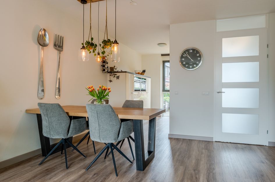 - Lichte en sfeervolle woonkamer, inclusief uitbouw met schuifpui en een stijlvolle PVC-vloer