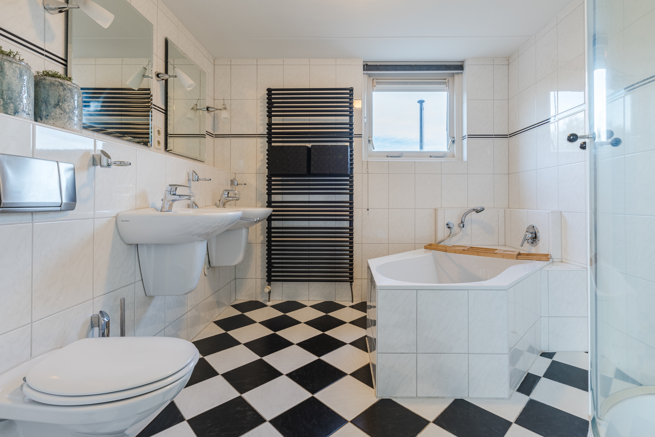 • Nette badkamer: ruim opgezet met ligbad, dubbele wastafel en zwevend toilet