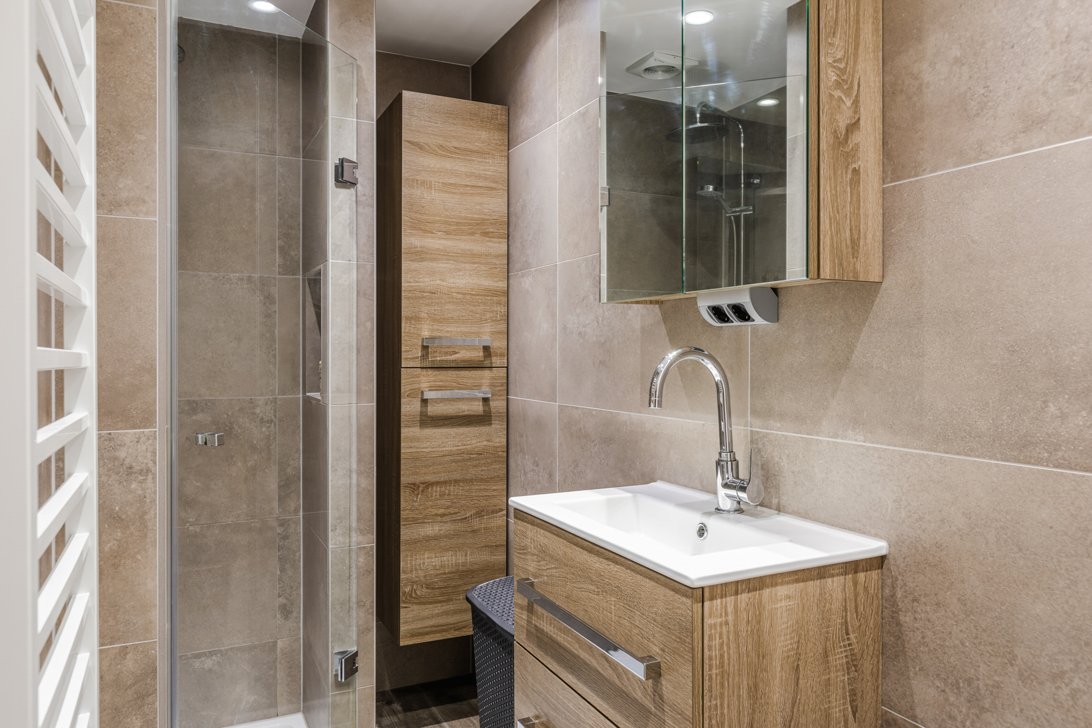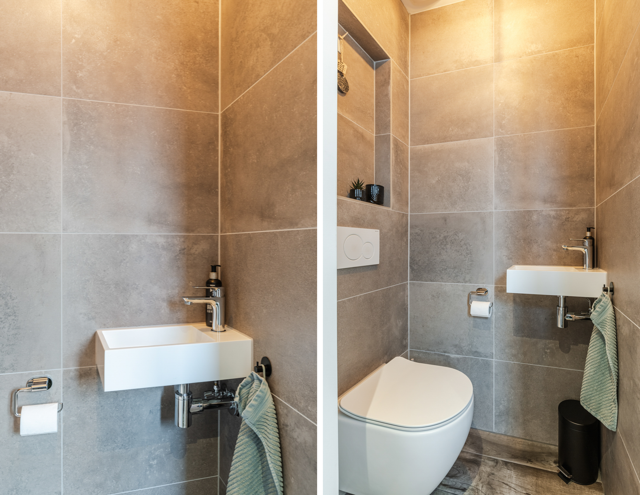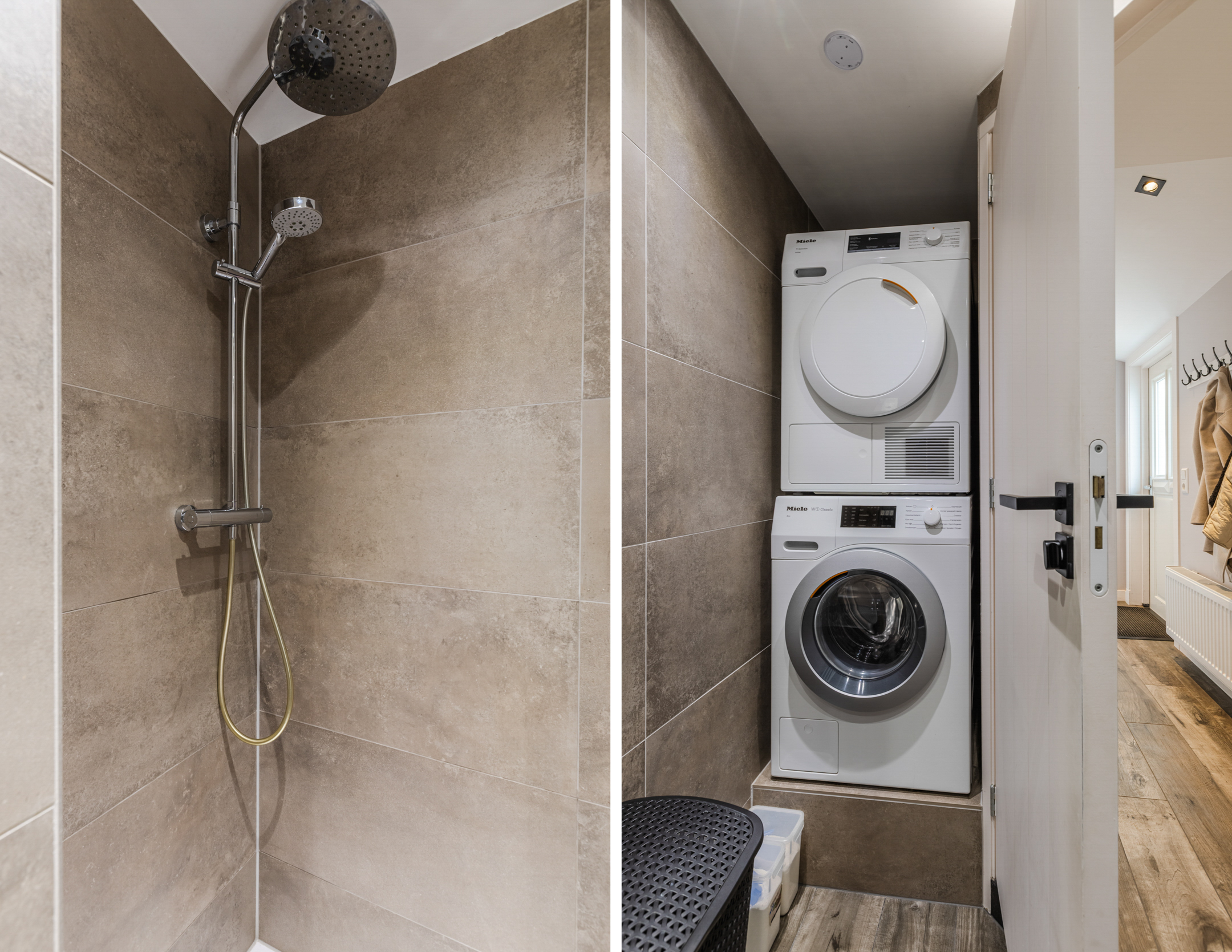 • Eigentijdse badkamer (2023): luxe en stijlvol, voorzien van douche, wastafelmeubel, handdoekradiator, zwevend opbergmeubel en aansluiting voor wasmachine en droger