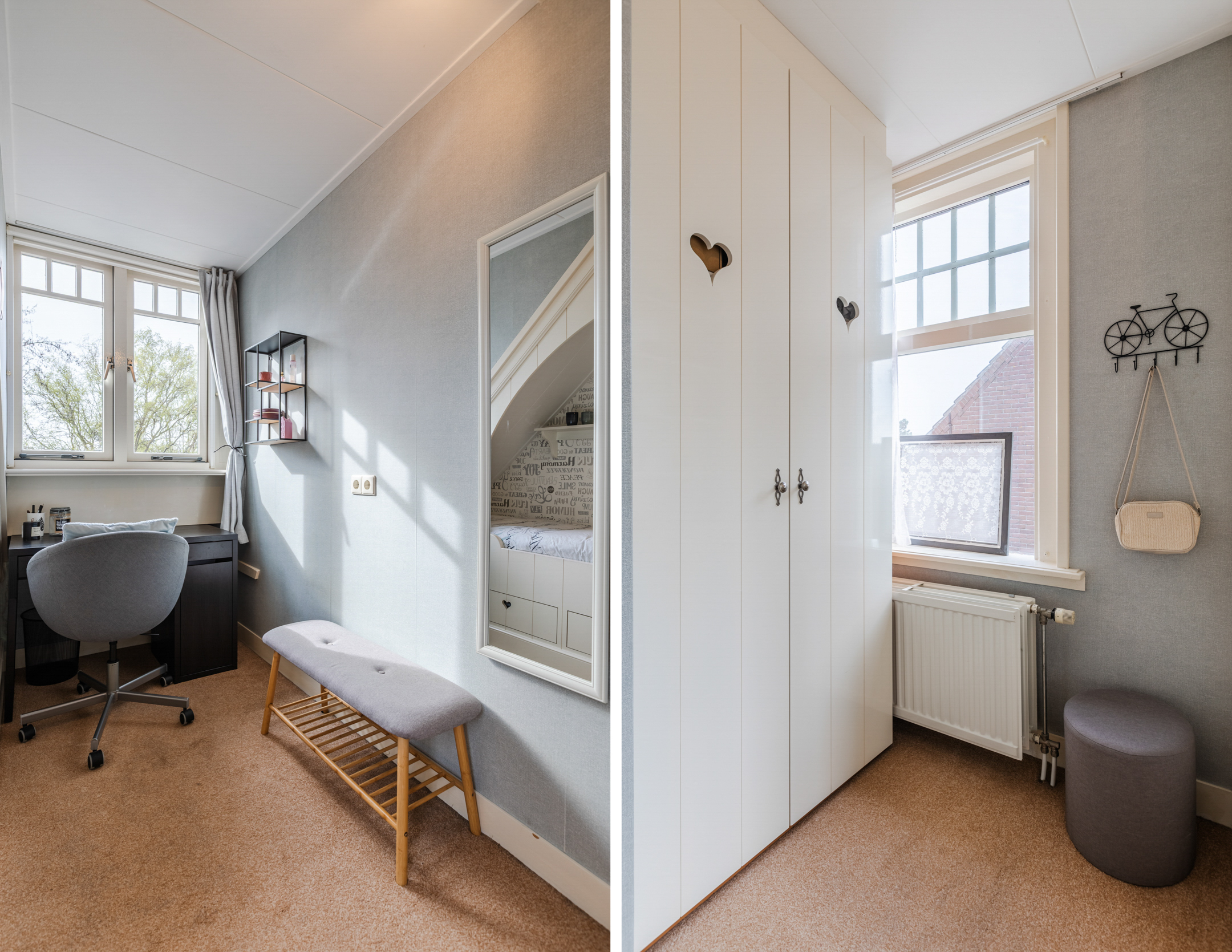 o Slaapkamer voorzijde met charmante dakkapel en vaste kast
