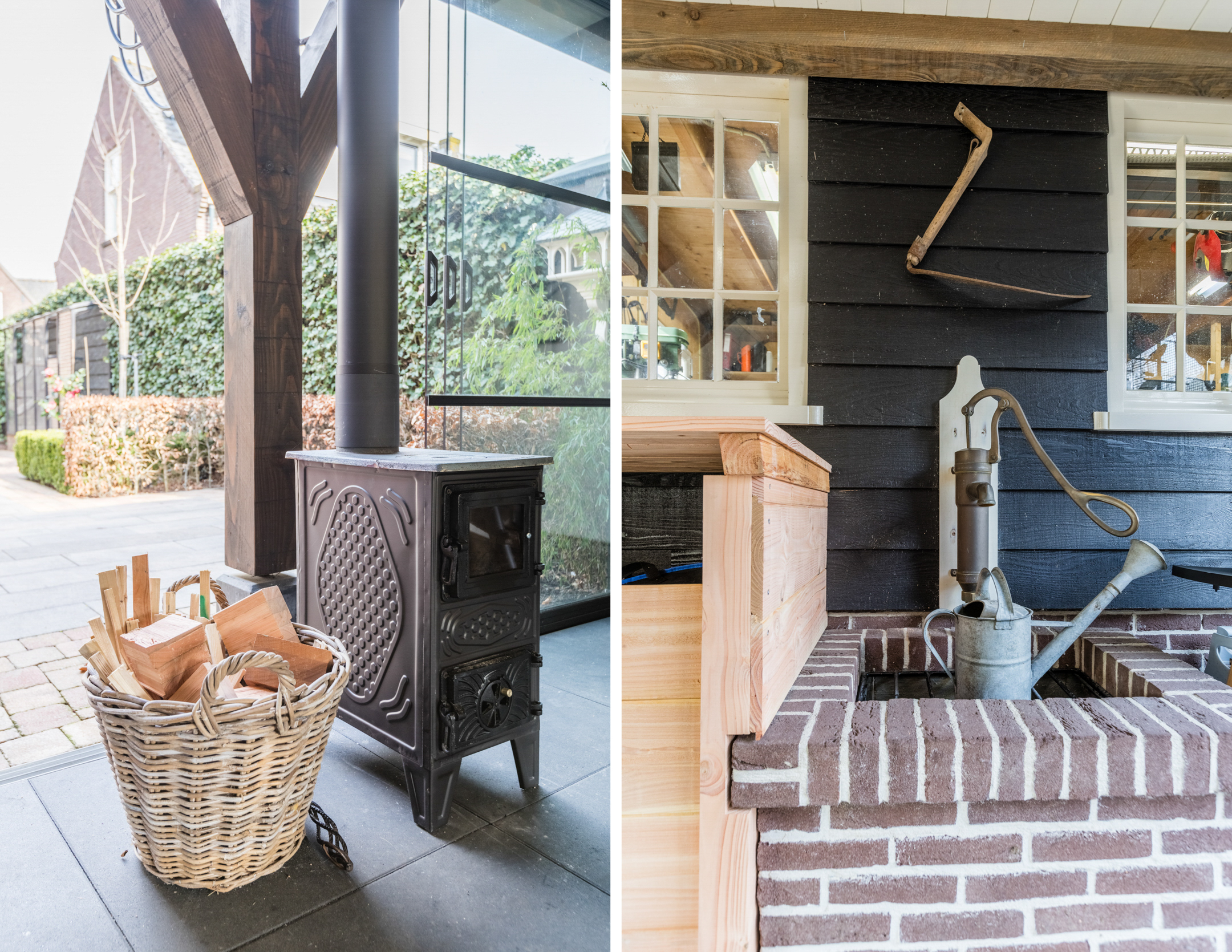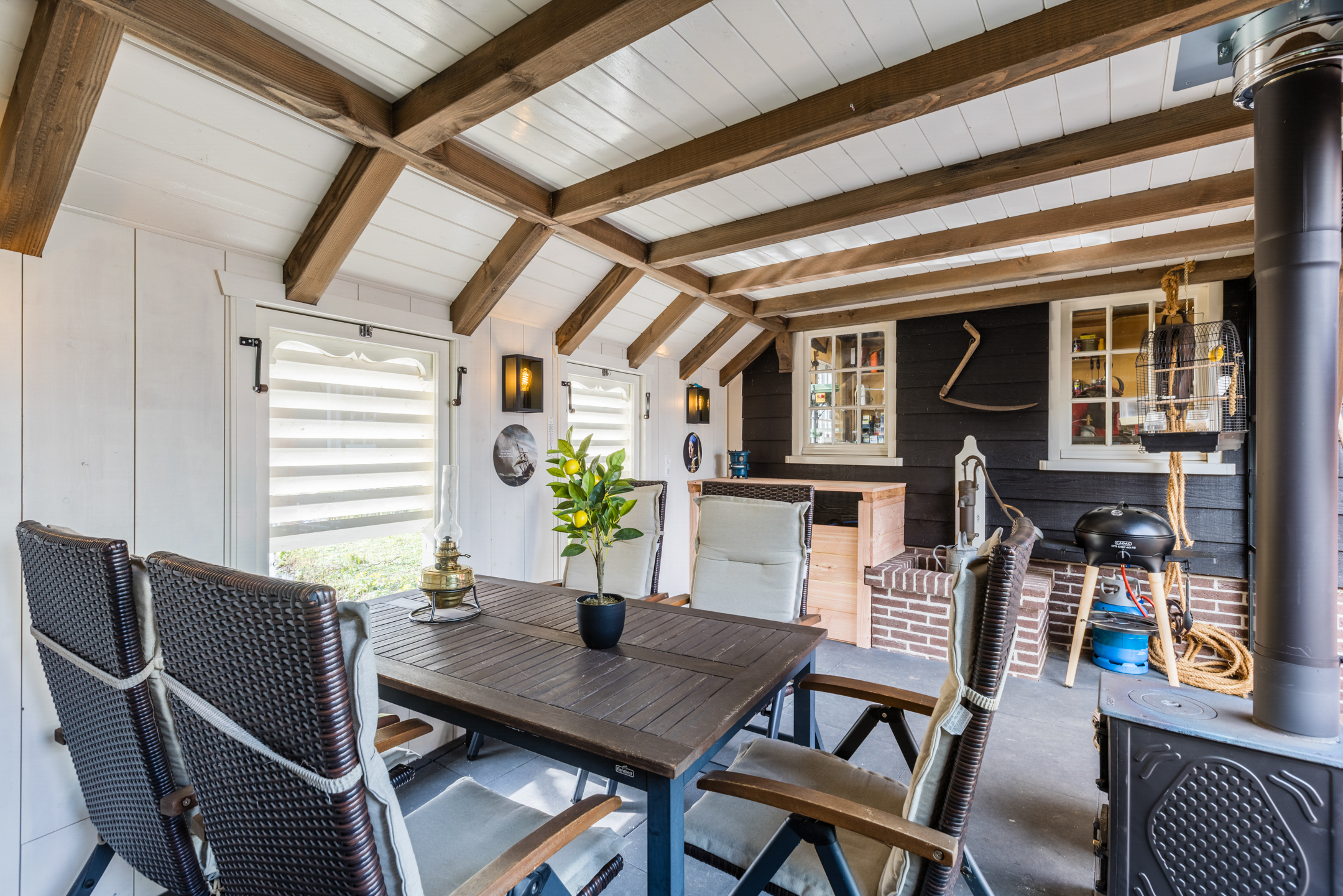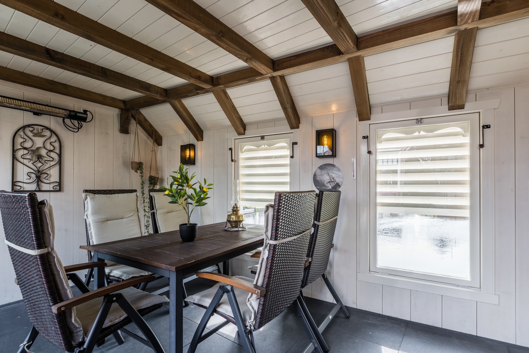 • Tuinkamer met stijlvolle glazen schuifdeuren, knusse houtkachel en uitzicht op het water en volop privacy – een perfecte plek voor ontbijt in de zon, een borrel in de avond of een ontspannen middag met een boek
