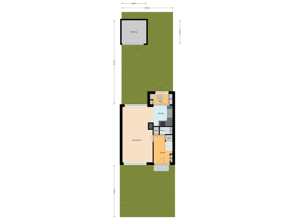 - Diepe achtertuin op het noordoosten met vrijstaande stenen berging en achterom