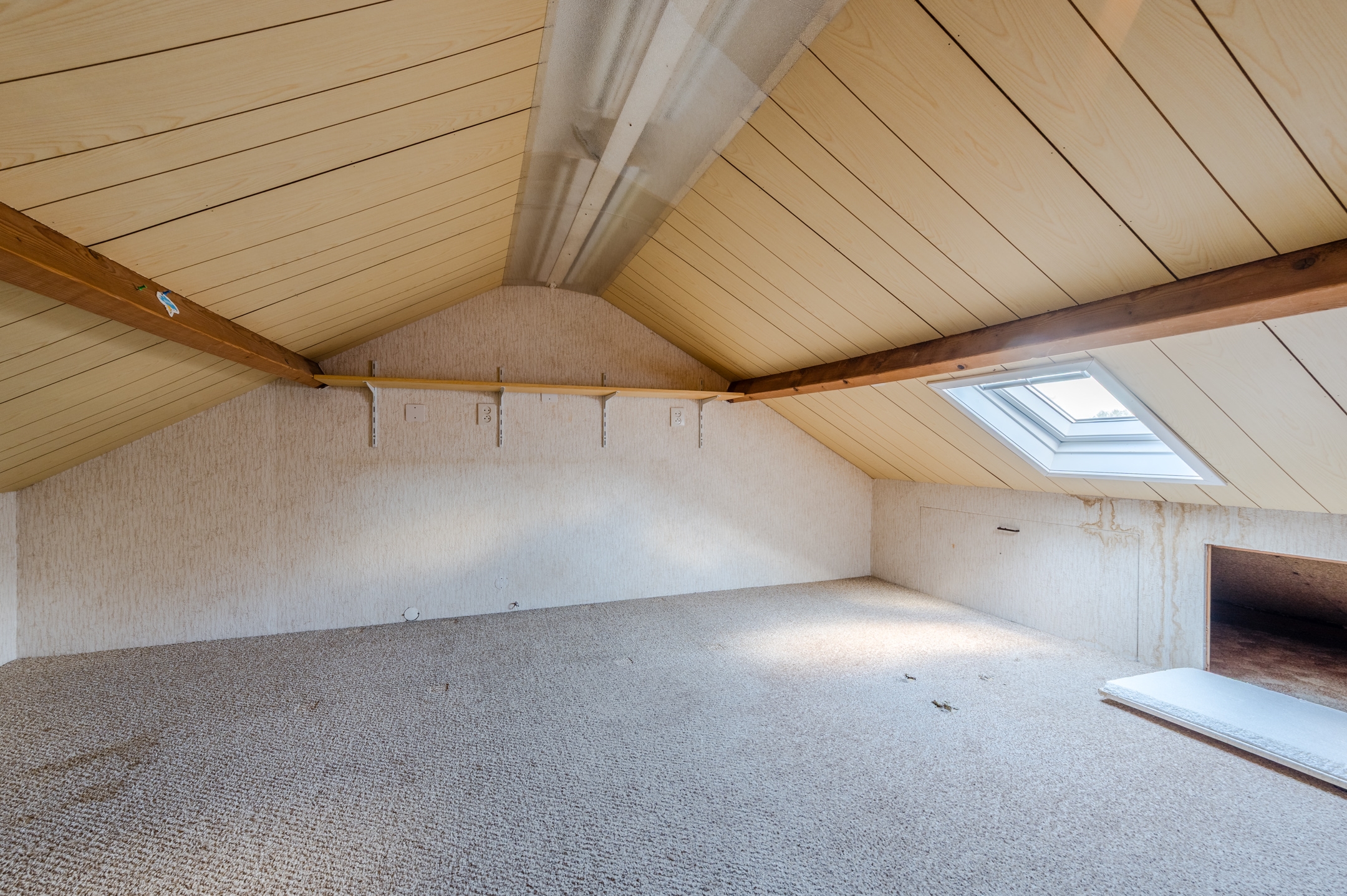 - Grote vliering met dakraam en veel bergruimte – met een nokverhoging eenvoudig om te bouwen tot vierde slaapkamer