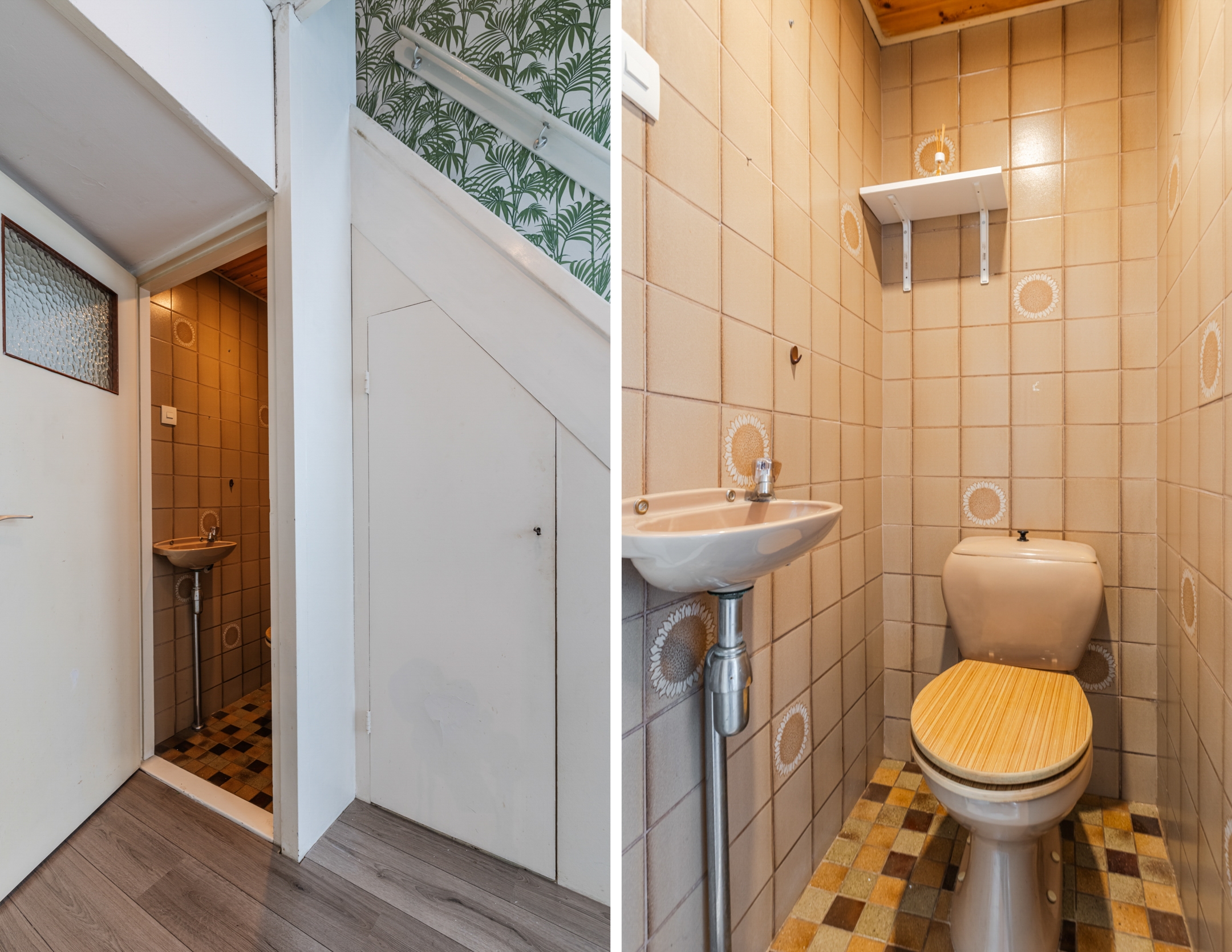 • Badkamer met ligbad, toilet, wastafel en aansluitingen voor wasmachine en droger – klaar om naar eigen smaak te moderniseren