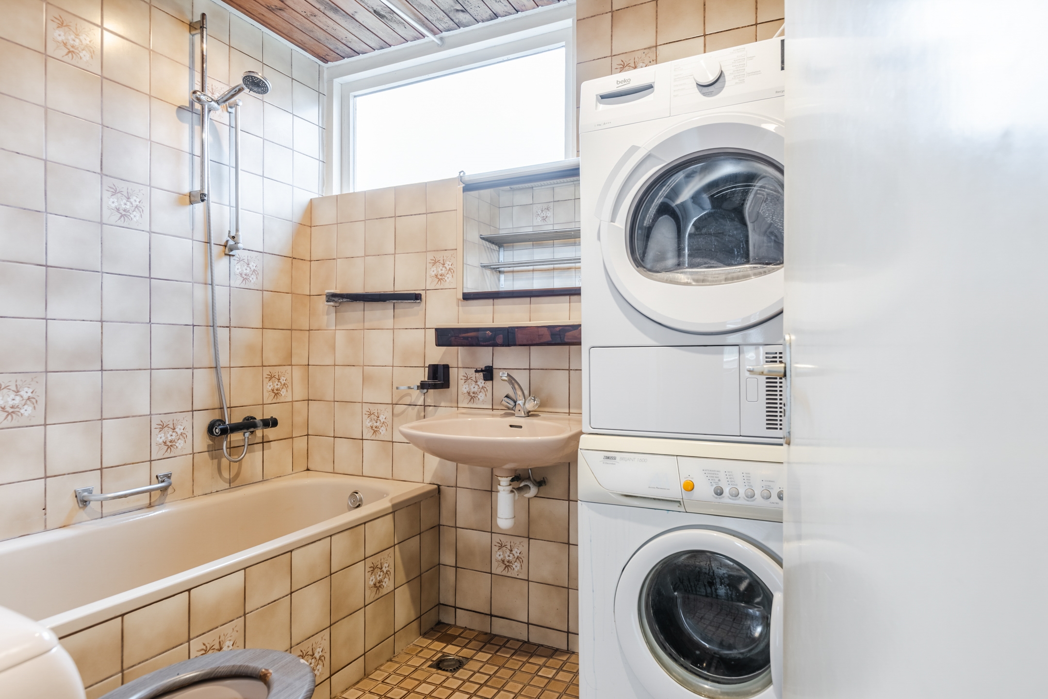 • Badkamer met ligbad, toilet, wastafel en aansluitingen voor wasmachine en droger – klaar om naar eigen smaak te moderniseren