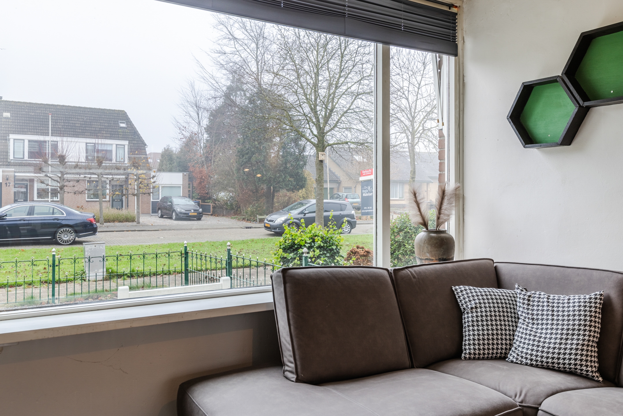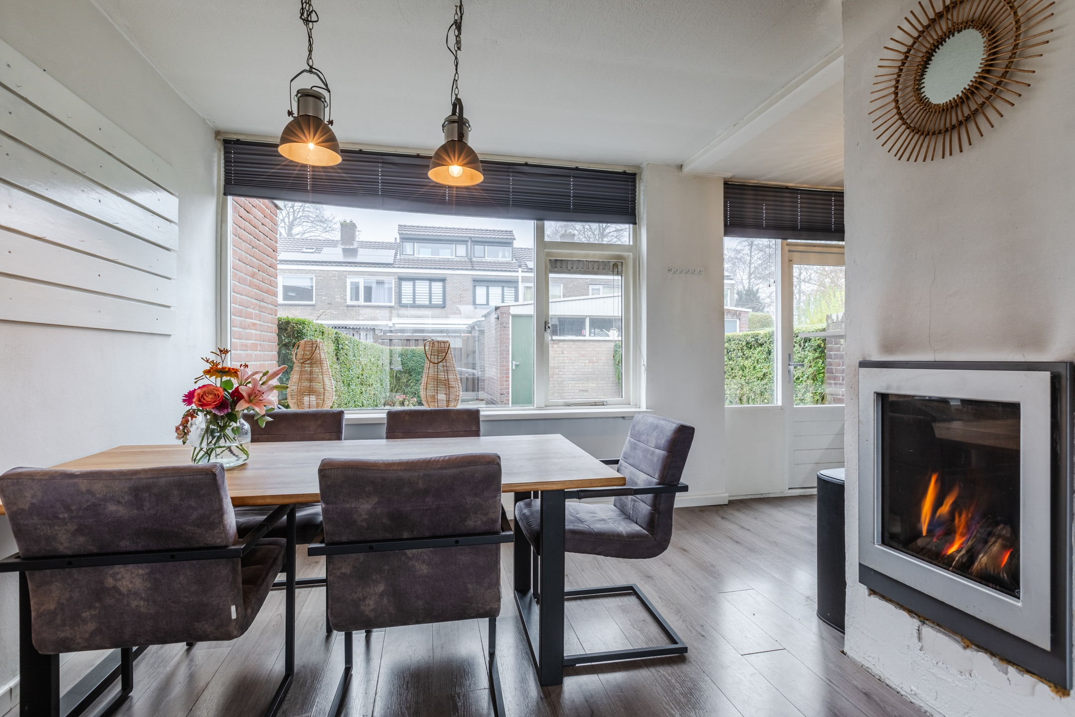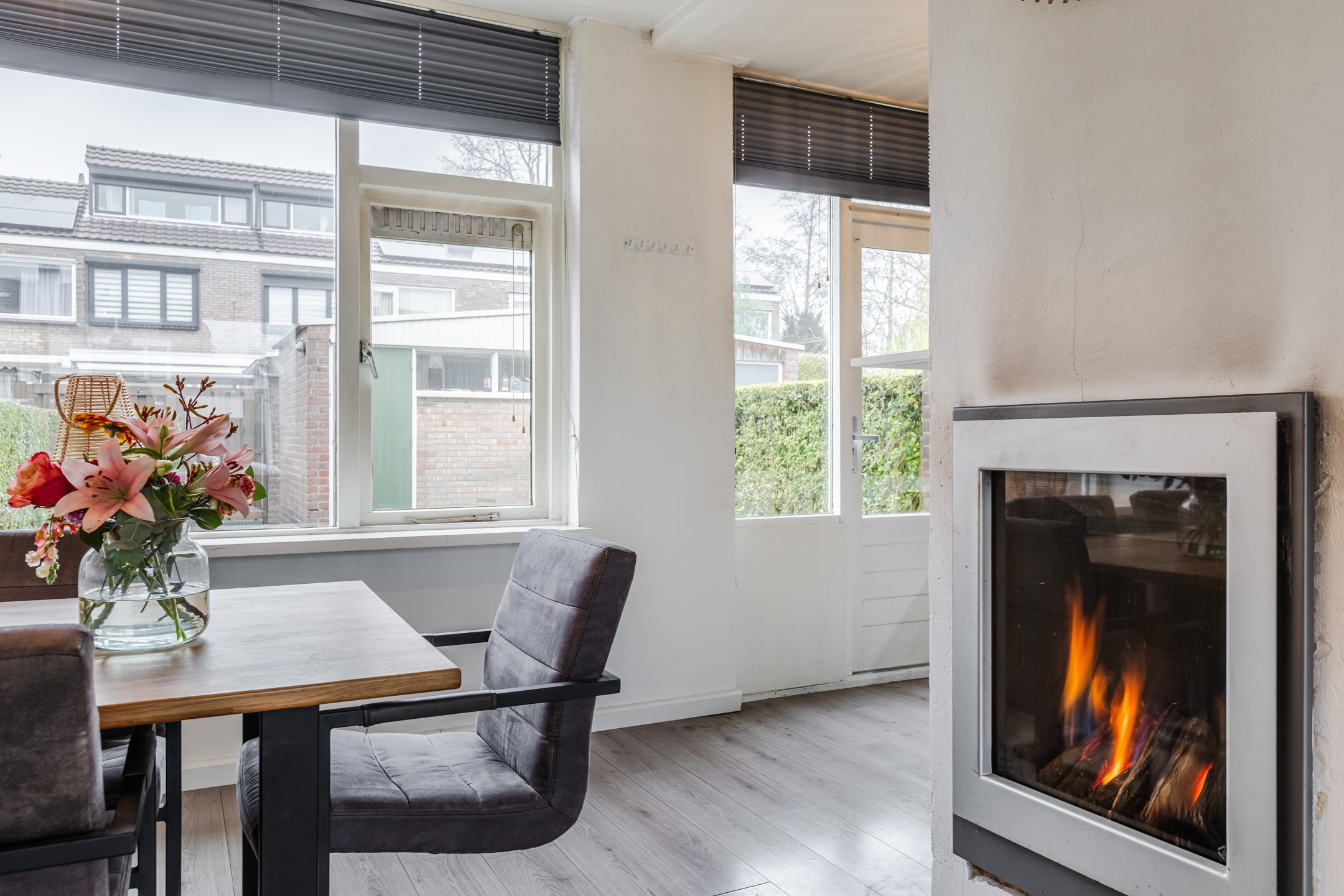 • Lichte woonkamer met vrij uitzicht op de groene zone aan de voorzijde én een gezellige open haard