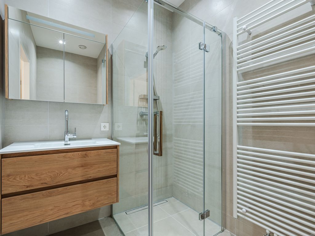 - Een in 2024 professioneel gebouwde badkamer uitgevoerd met een inloopdouche, wastafelmeubel en zwevend toilet