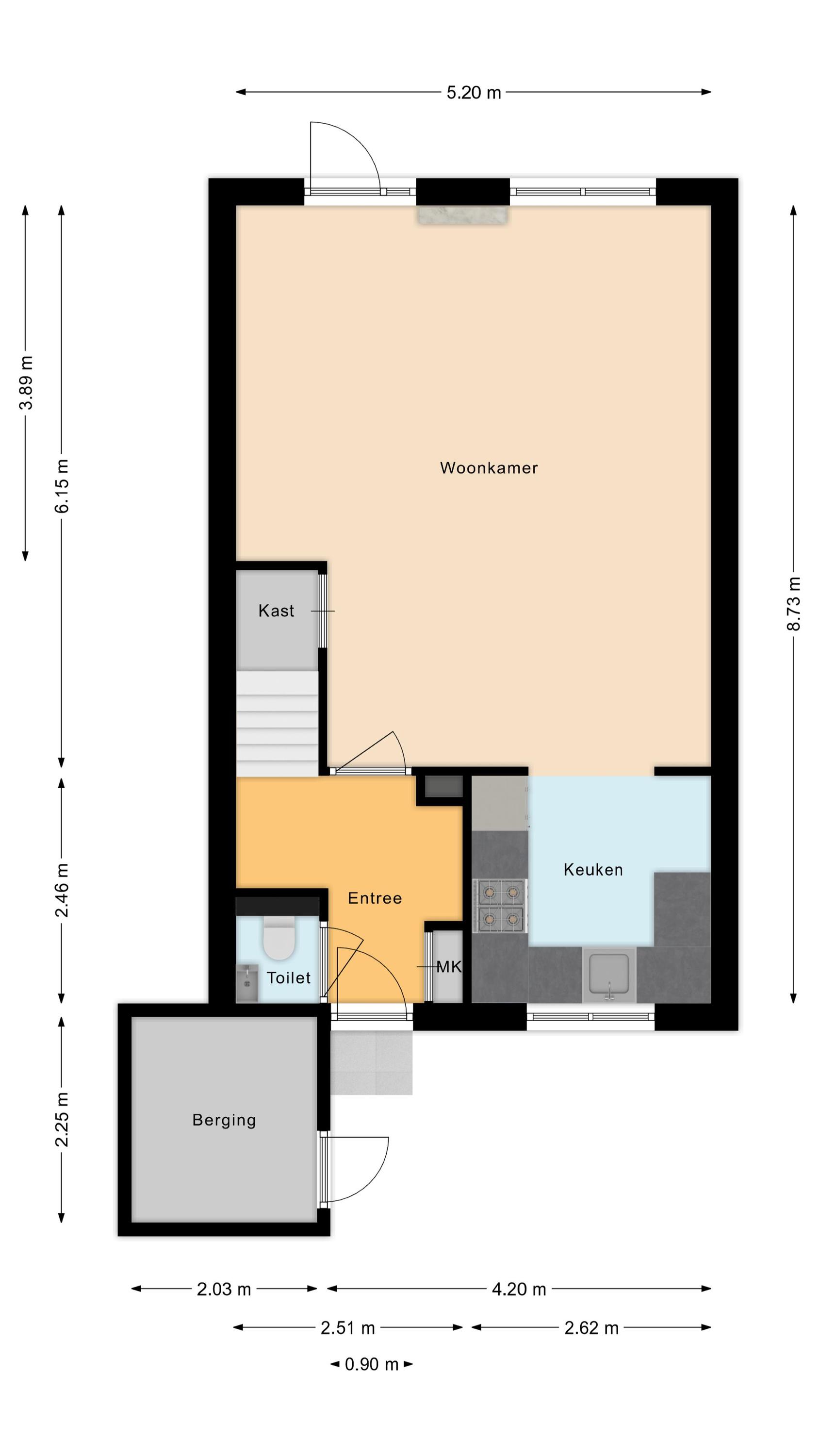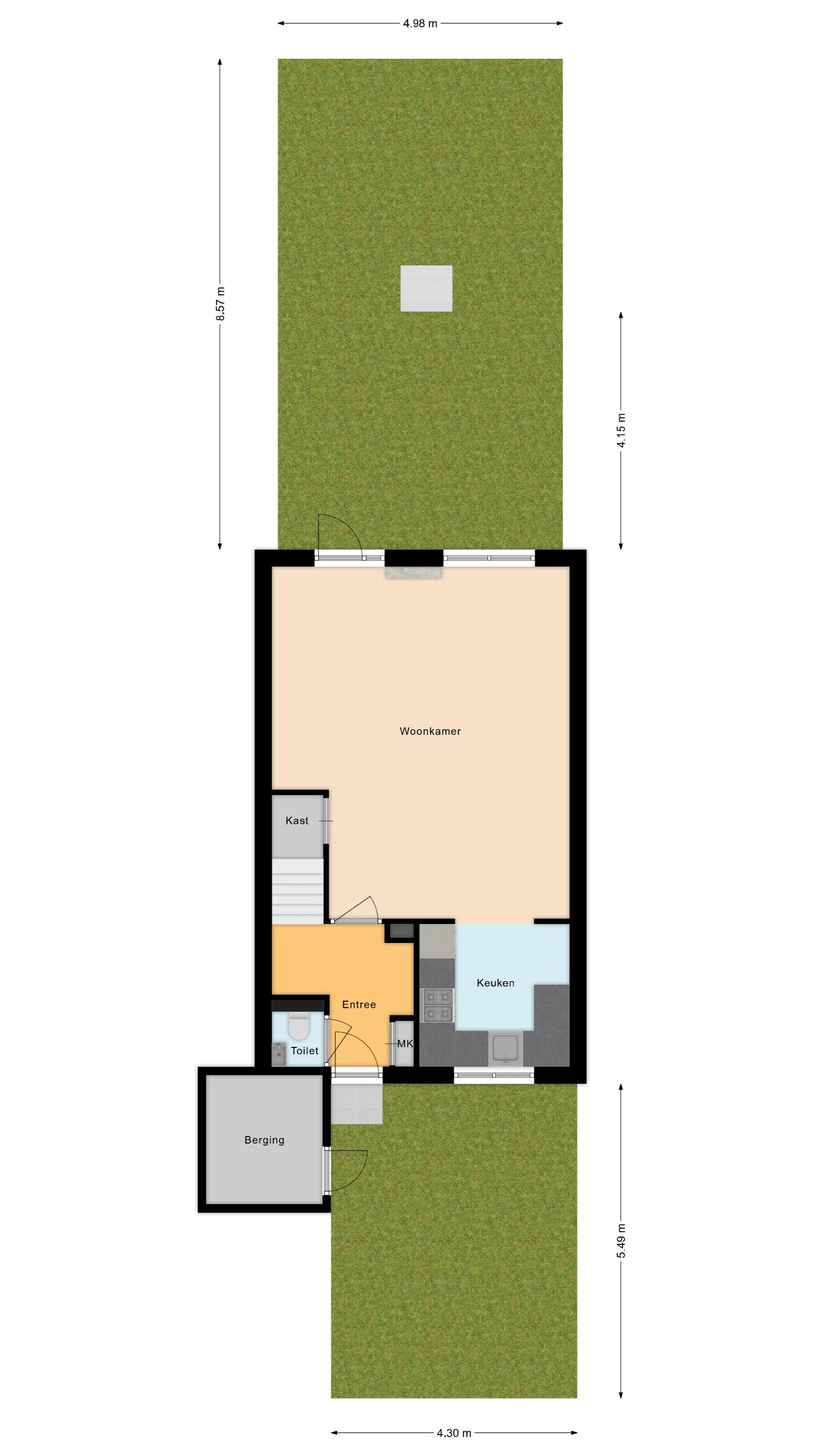 • Aangebouwde, stenen berging in de voortuin, ideaal voor fietsen en extra opslag