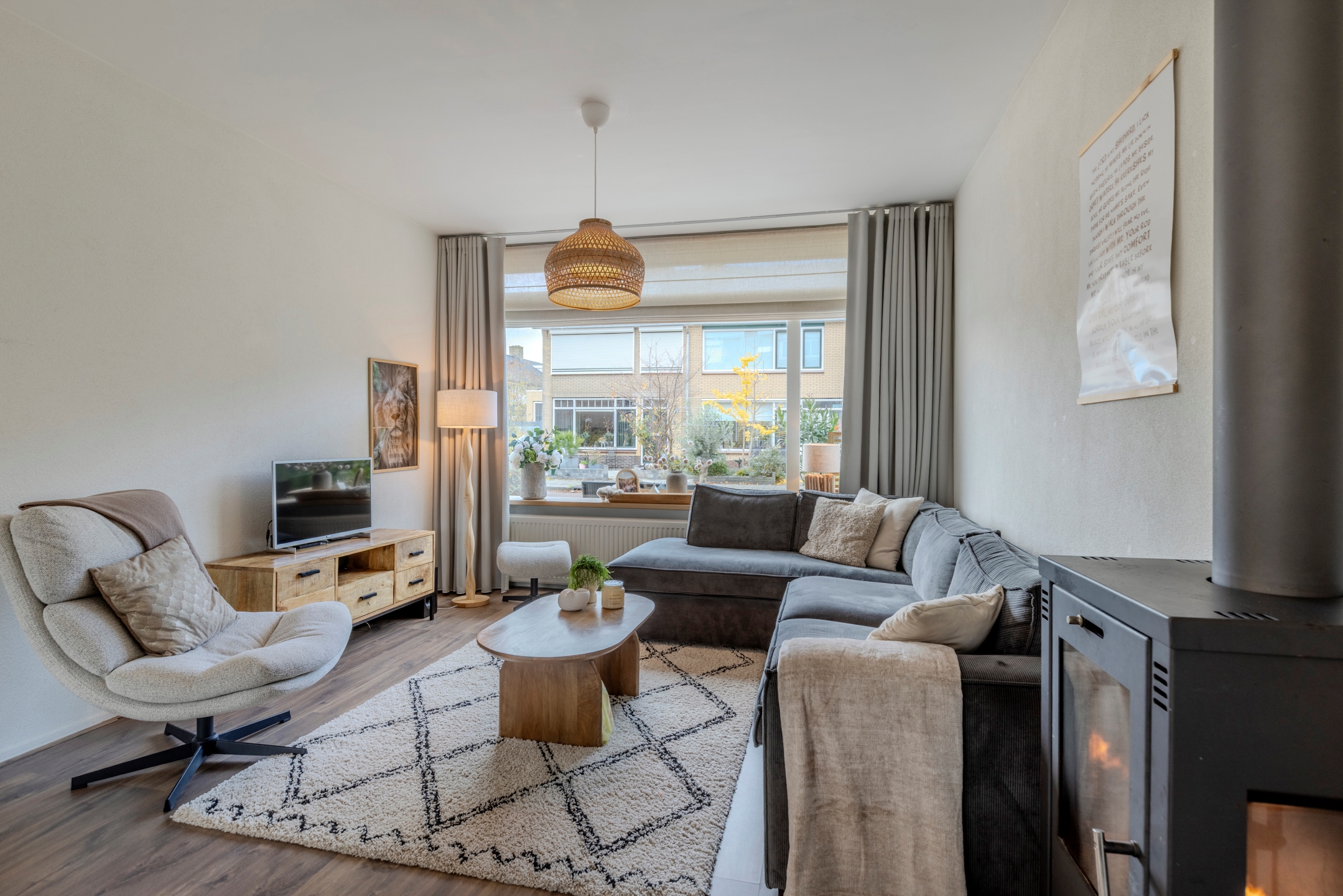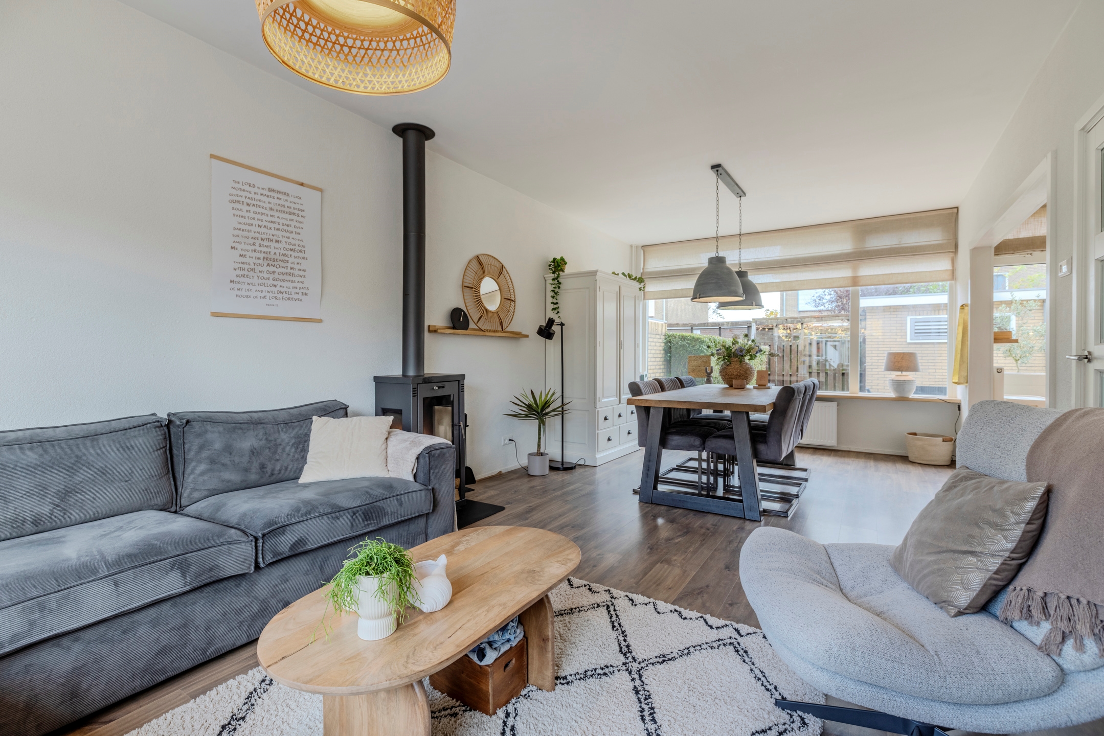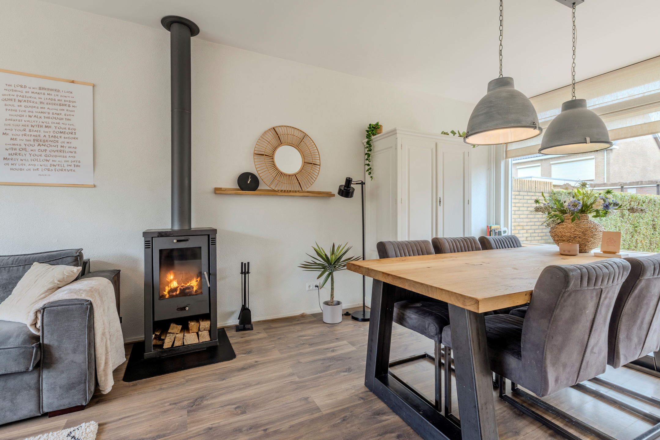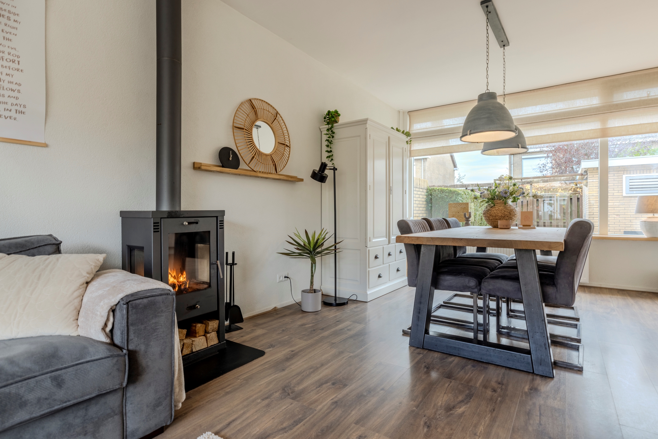 • Sfeervolle, lichte woonkamer met een gezellige houtkachel voor de koude dagen