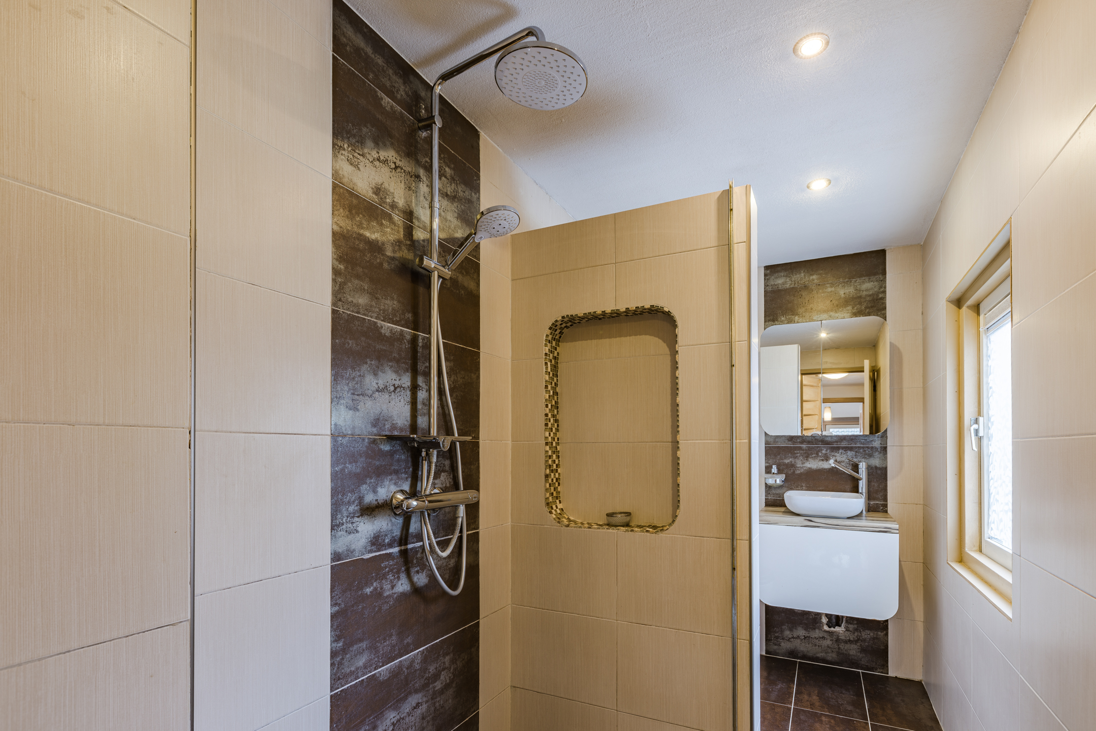 • Stijlvolle badkamer voorzien van inloopdouche, wastafelmeubel en zwevend toilet