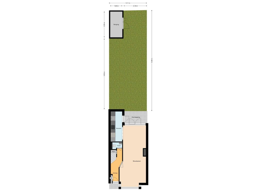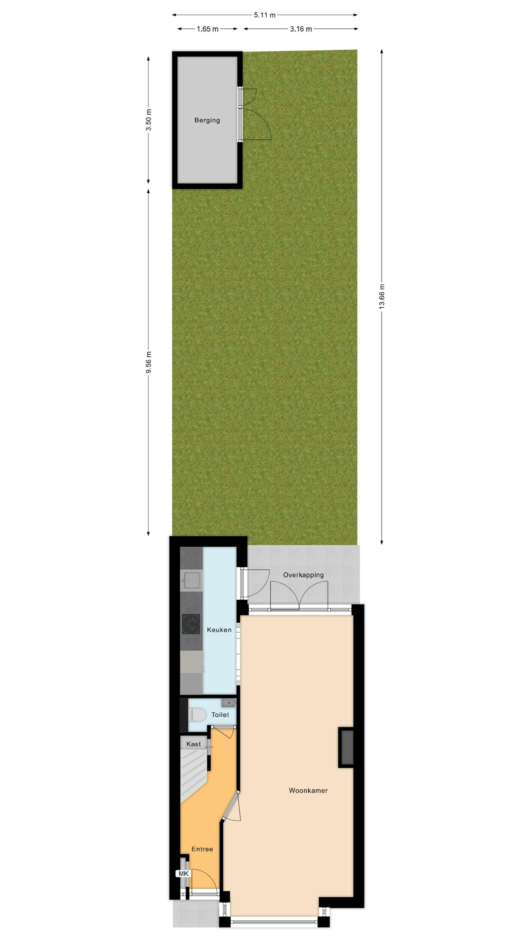 • Achterom bereikbaar via poortdeur en voorzien van een vrijstaande houten berging