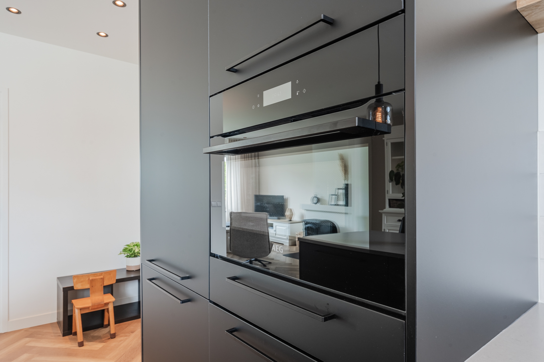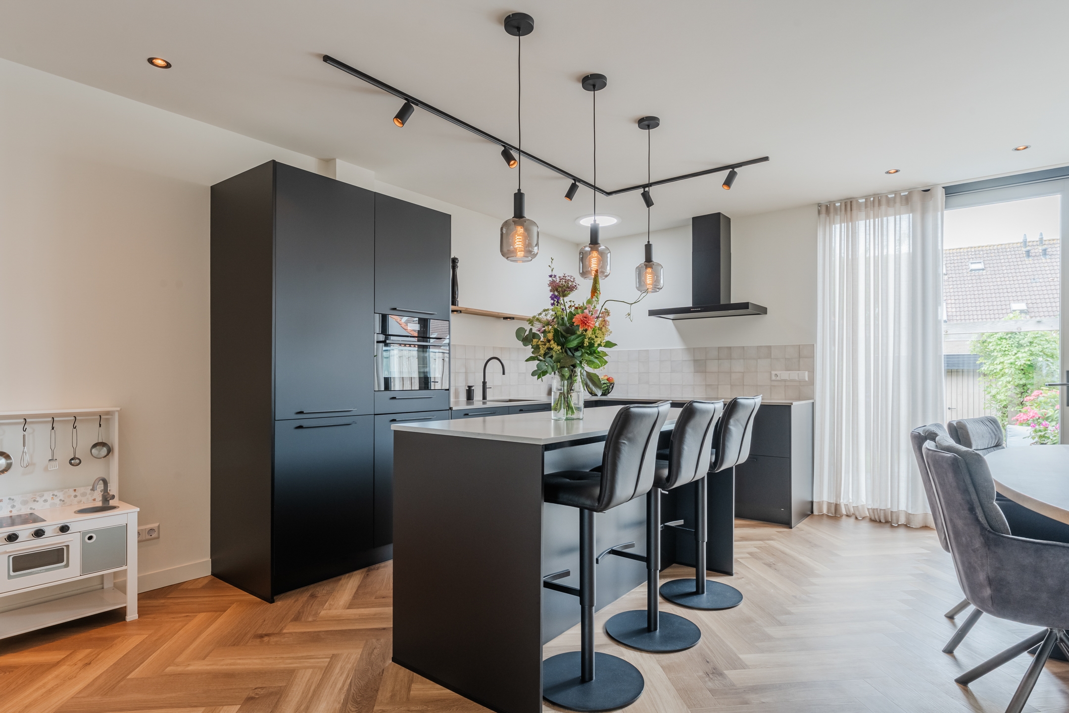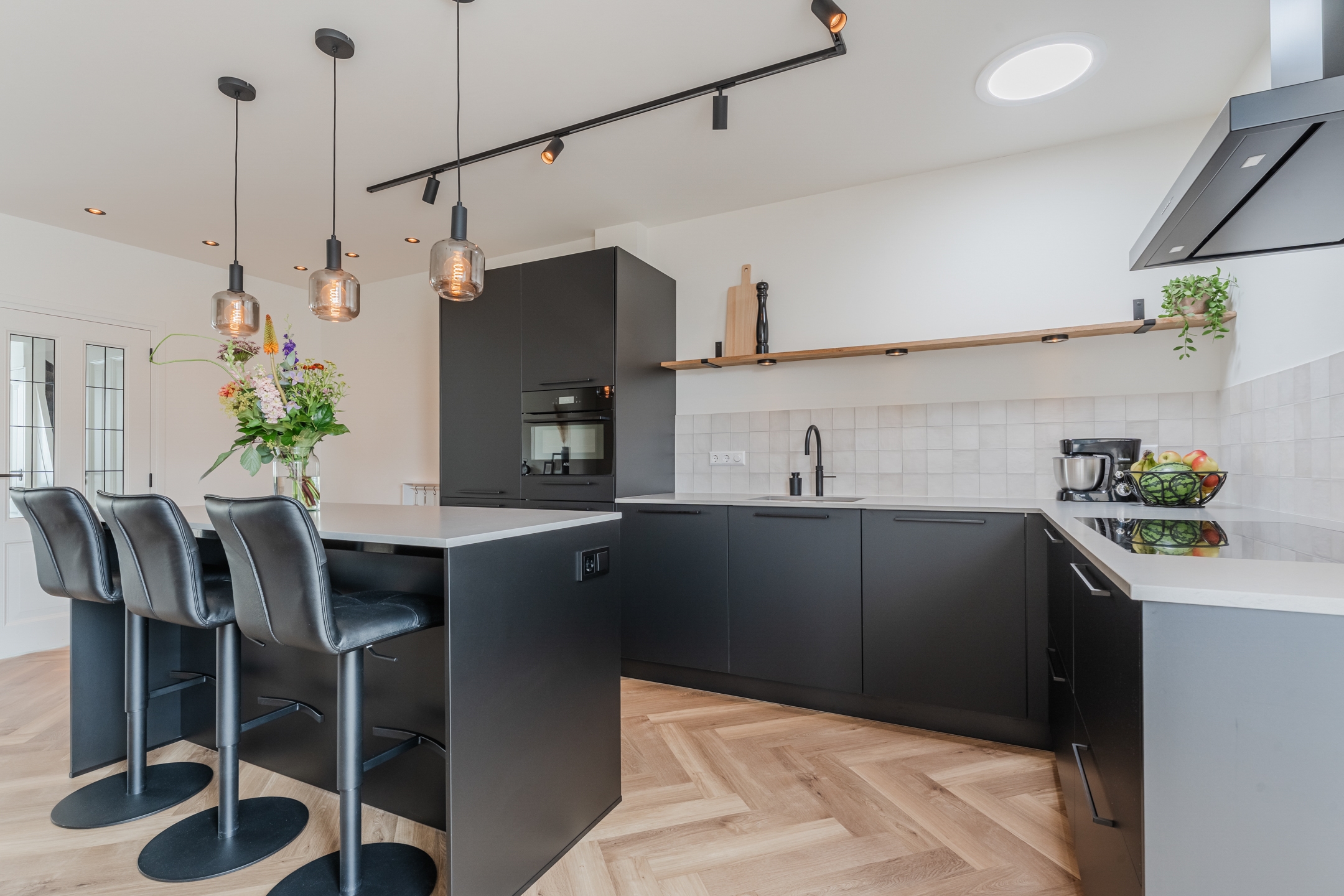 - Strakke, luxe woonkeuken (2022) met o.a. Quooker, inductiekookplaat en gezellig bargedeelte