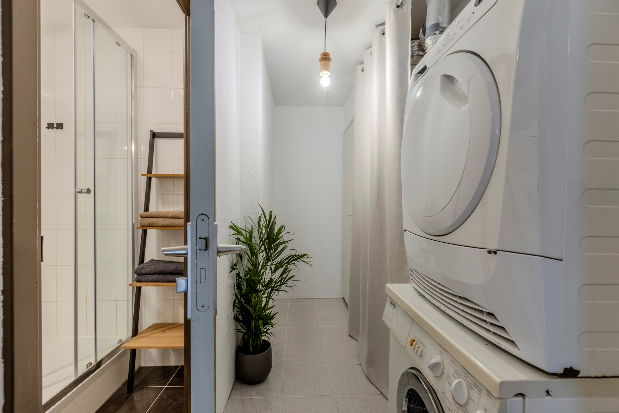 •	In de tweede hal is een fijne washoek gecreëerd, met ruimte voor zowel wasmachine als droger