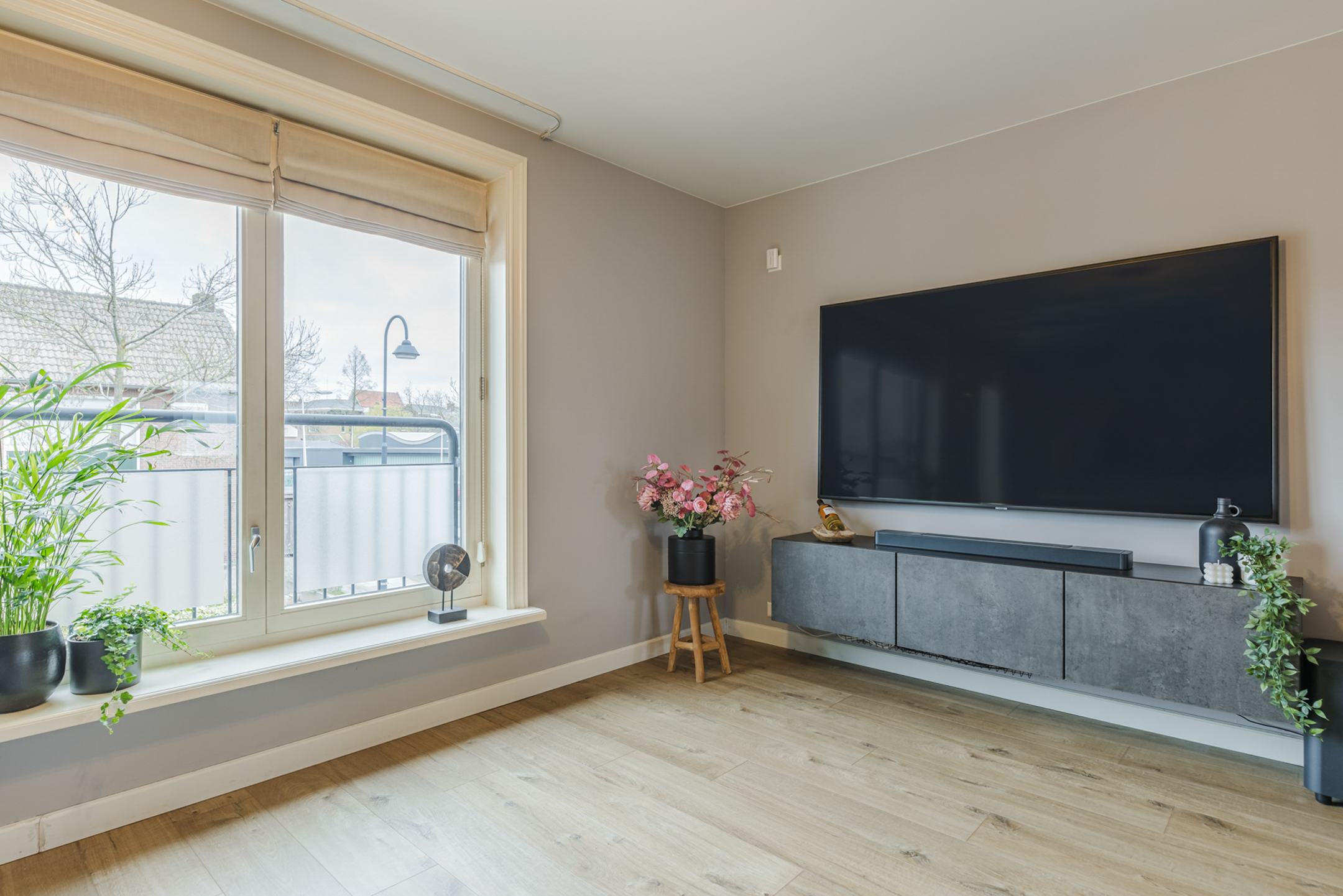 • Lichte en gezellige woonkamer op de eerste verdieping met Frans balkon en een fraaie PVC vloer met vloerverwarming