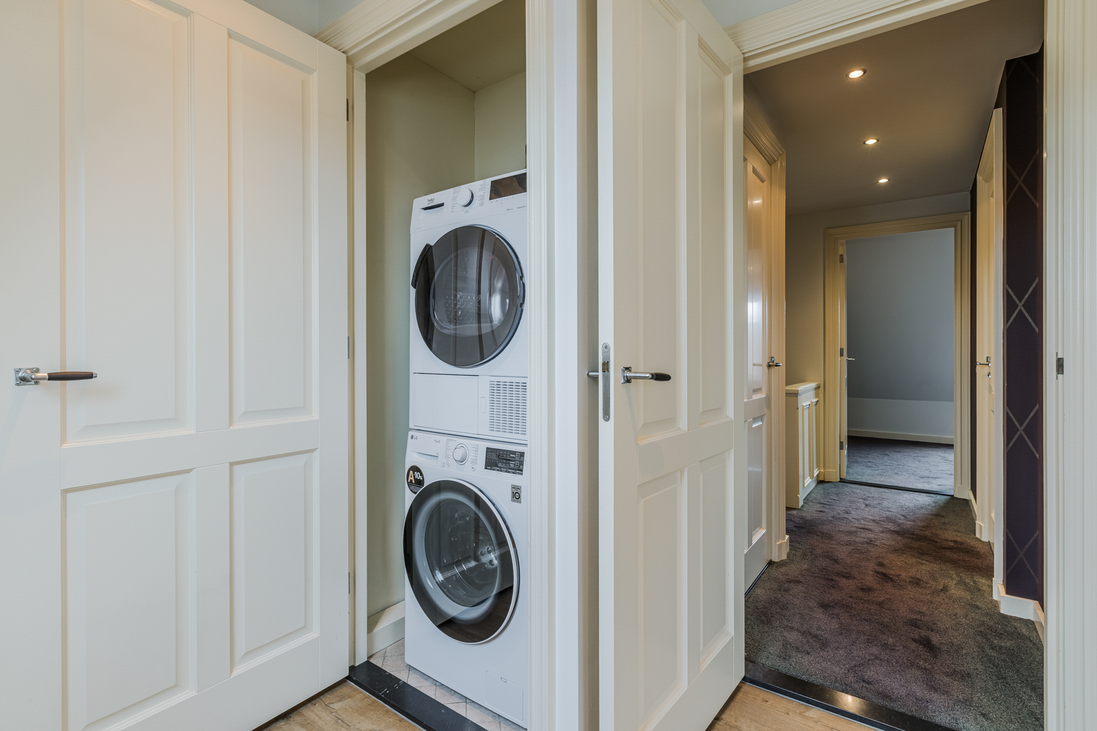 o Slaapkamer aan de achterzijde met mooie PVC vloer, twee dakramen en praktische kast met wasmachine- en drogeraansluiting