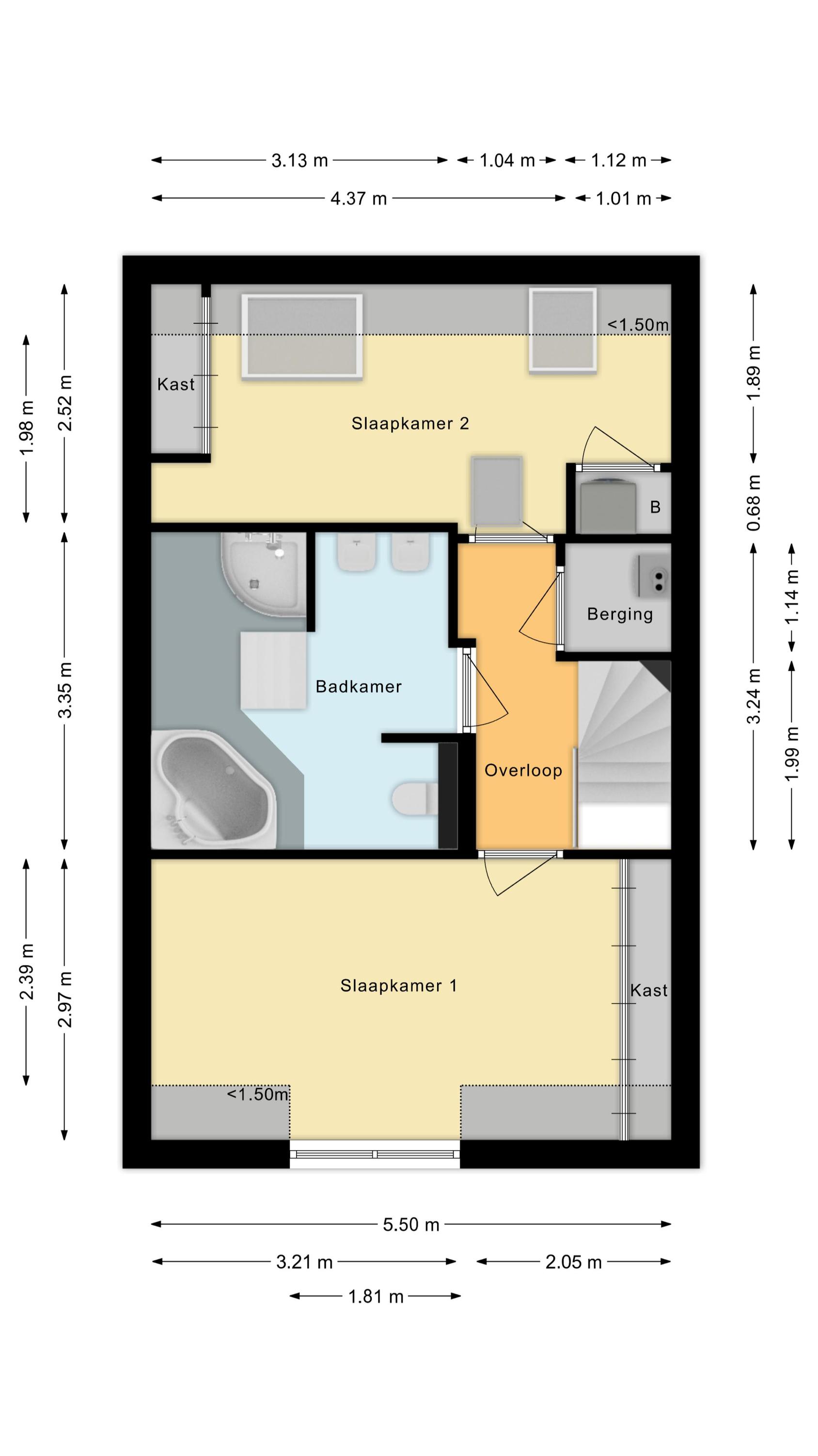 • Tweede verdieping met twee fijne slaapkamers en de badkamer: