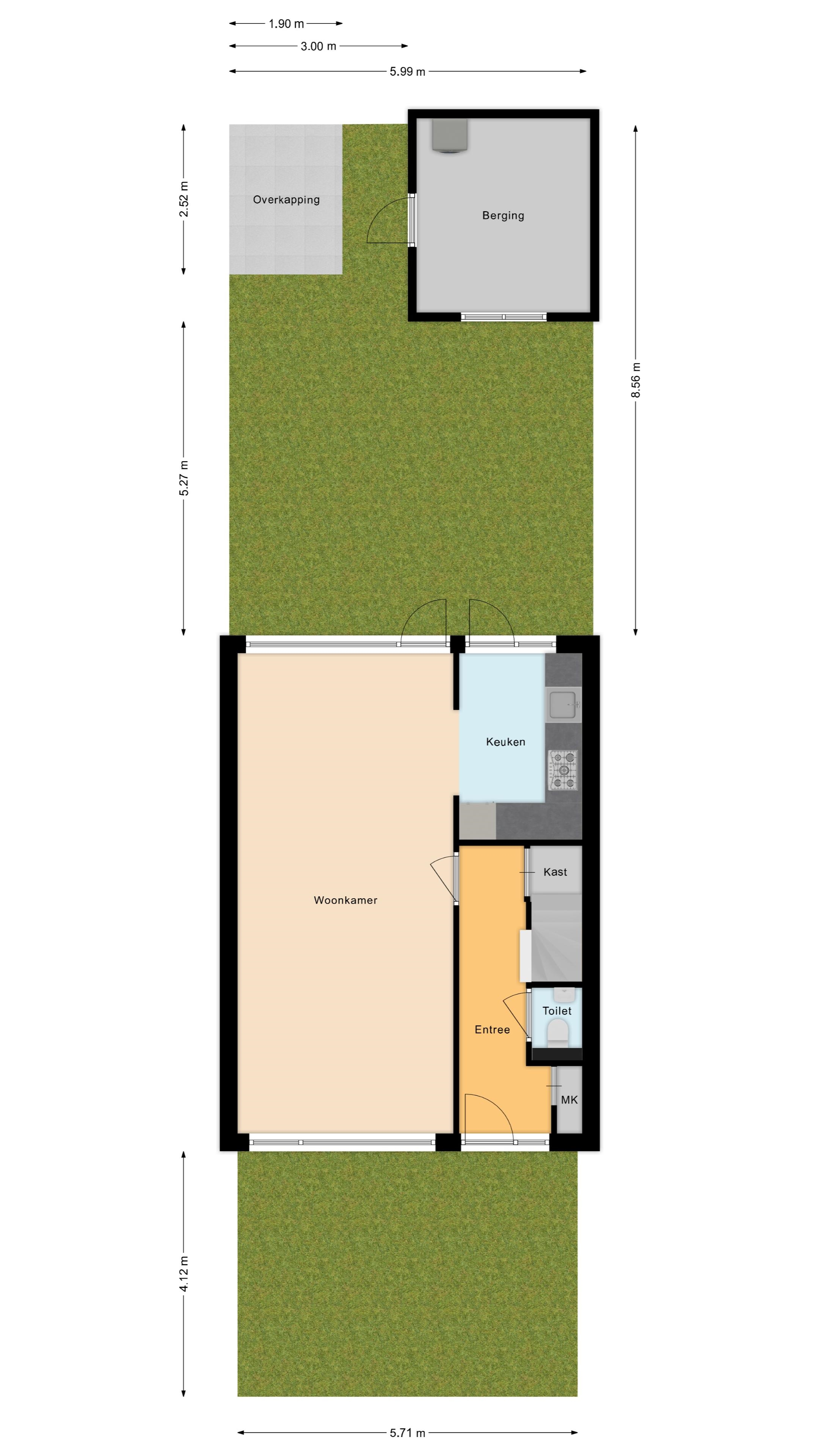 • Zonnige achtertuin op het zuidoosten: achterom bereikbaar en voorzien van een vrijstaande stenen berging met aangrenzende overkapping – ideaal voor het stallen van fietsen