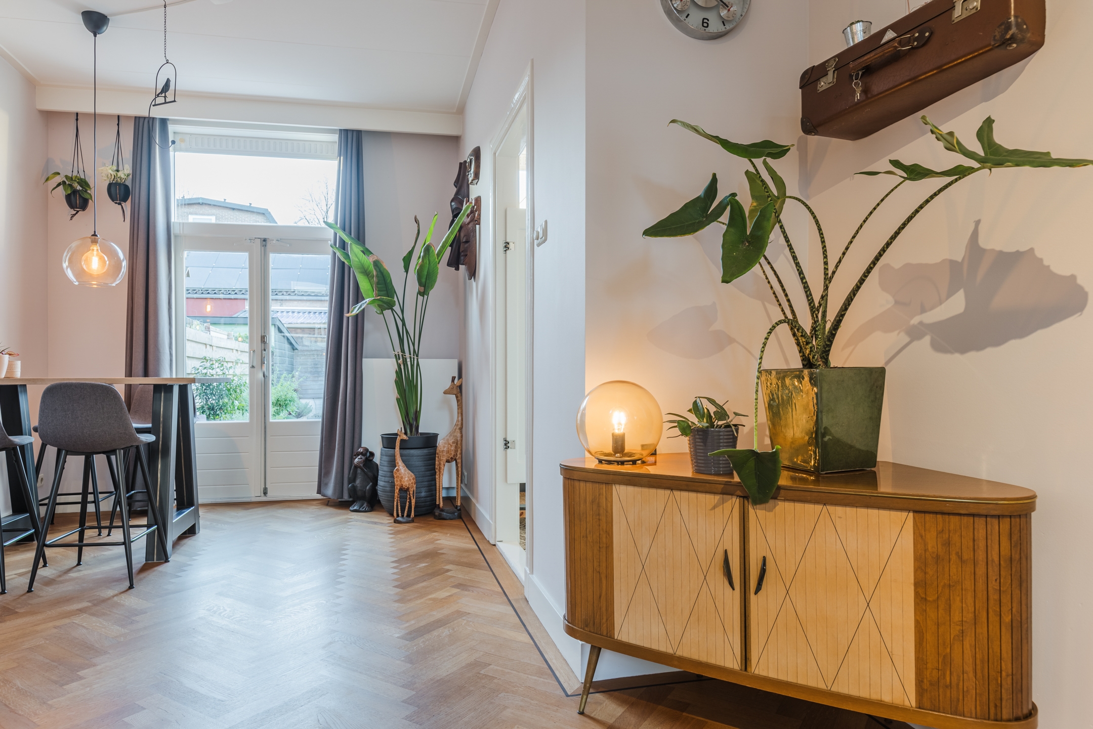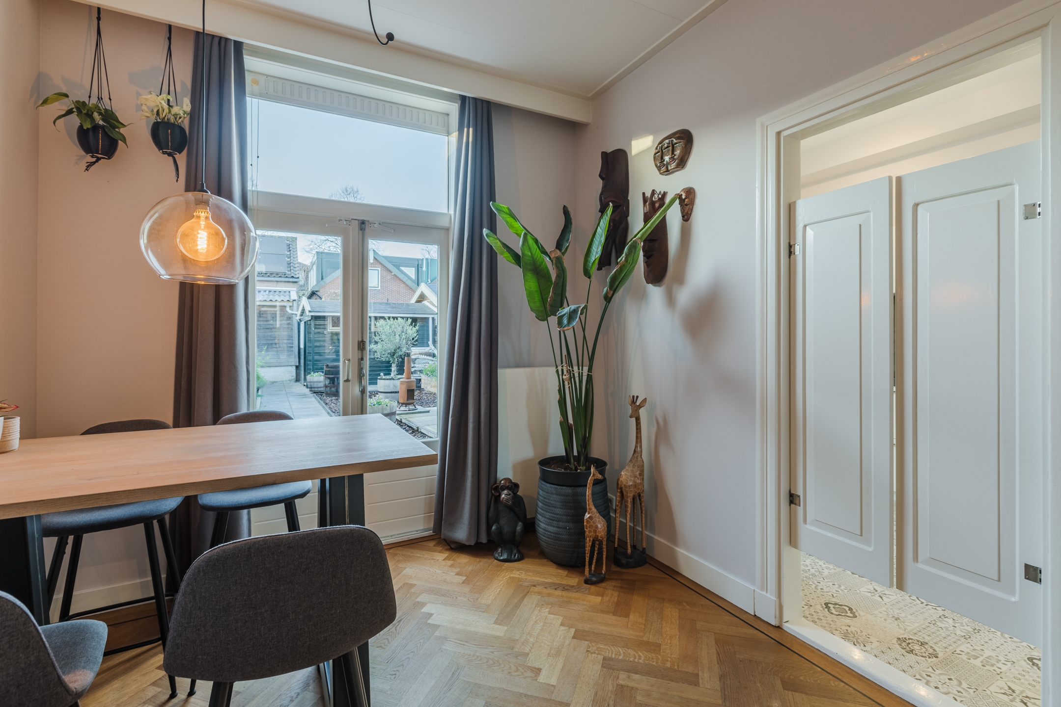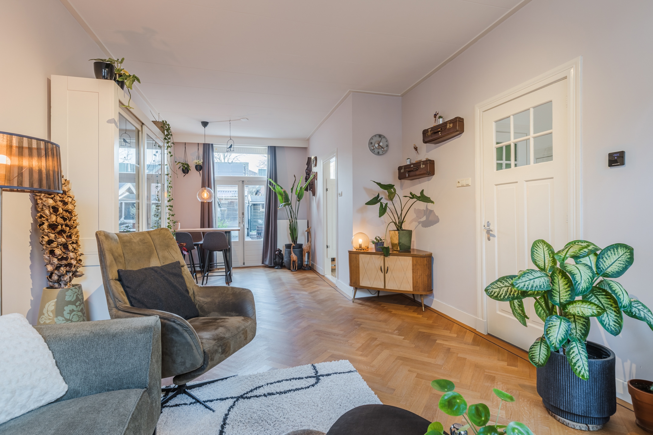 Karaktervolle jaren ’20-woning in Bodegraven met een perfecte mix van authentieke charme en modern comfort. De lichte woonkamer met visgraatvloer opent via openslaande deuren naar de diepe, zonnige achtertuin op het westen – ideaal voor lange zomeravonden.