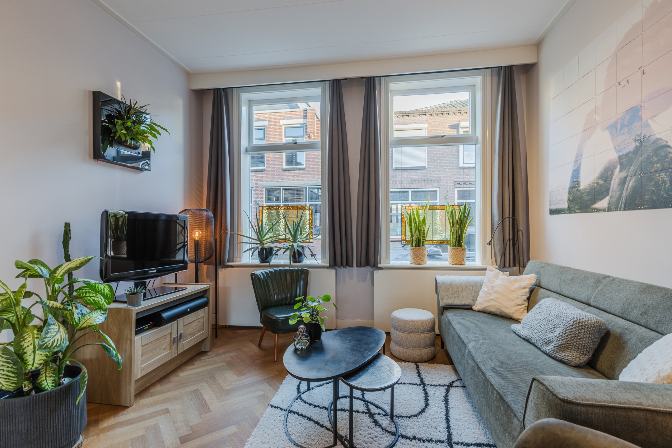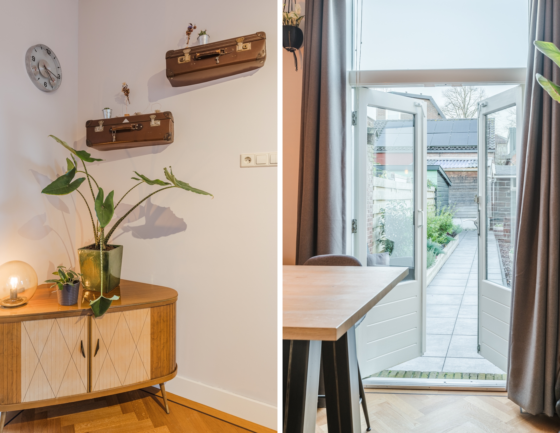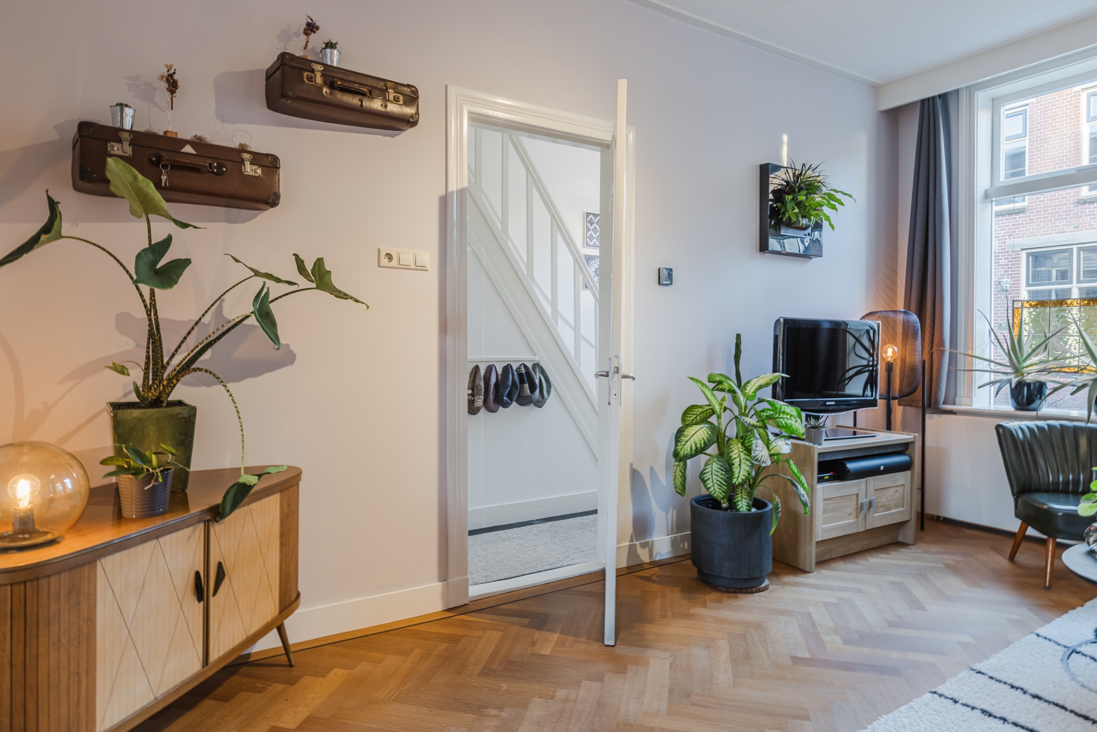 Karaktervolle jaren ’20-woning in Bodegraven met een perfecte mix van authentieke charme en modern comfort. De lichte woonkamer met visgraatvloer opent via openslaande deuren naar de diepe, zonnige achtertuin op het westen – ideaal voor lange zomeravonden.