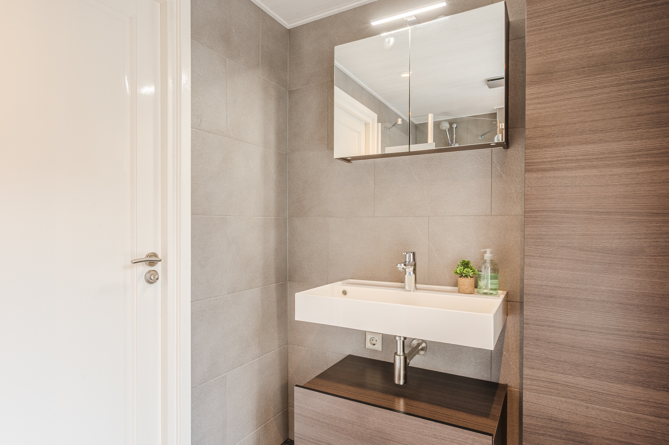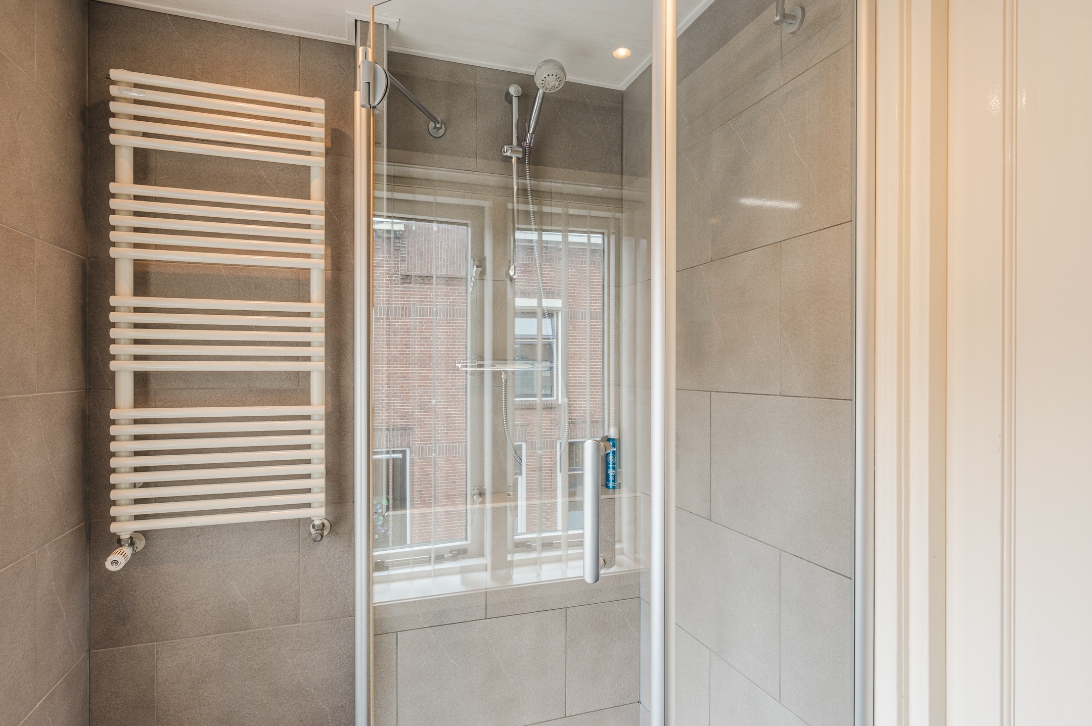 - Nette badkamer met douche, wastafelmeubel en rolluik