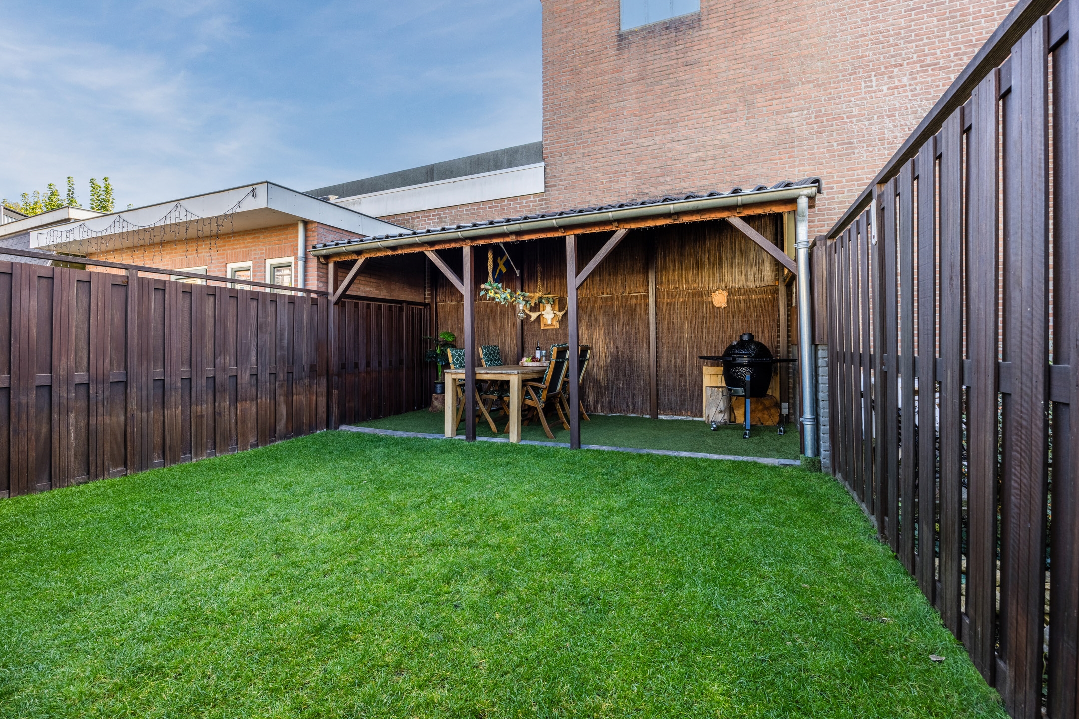 - Zeer diepe achtertuin op het zuidoosten met fantastische overkapping, strak aangelegd en nieuwe grasmat – volop zon en privacy!