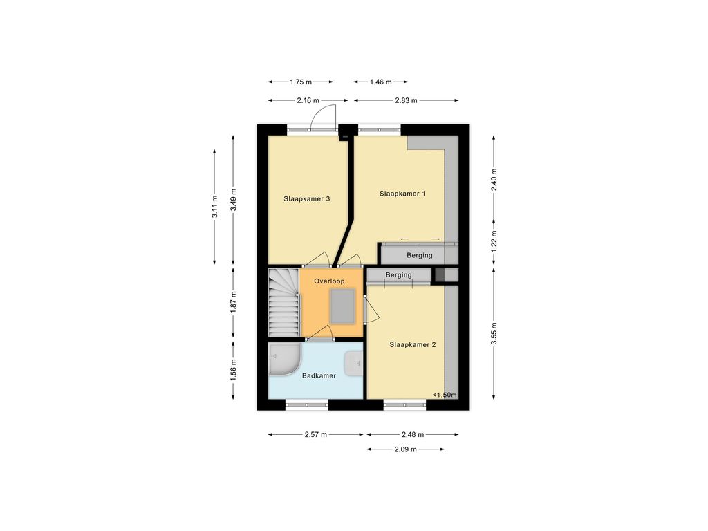 • Slaapkamer voorzijde met inbouwkast en rolluik