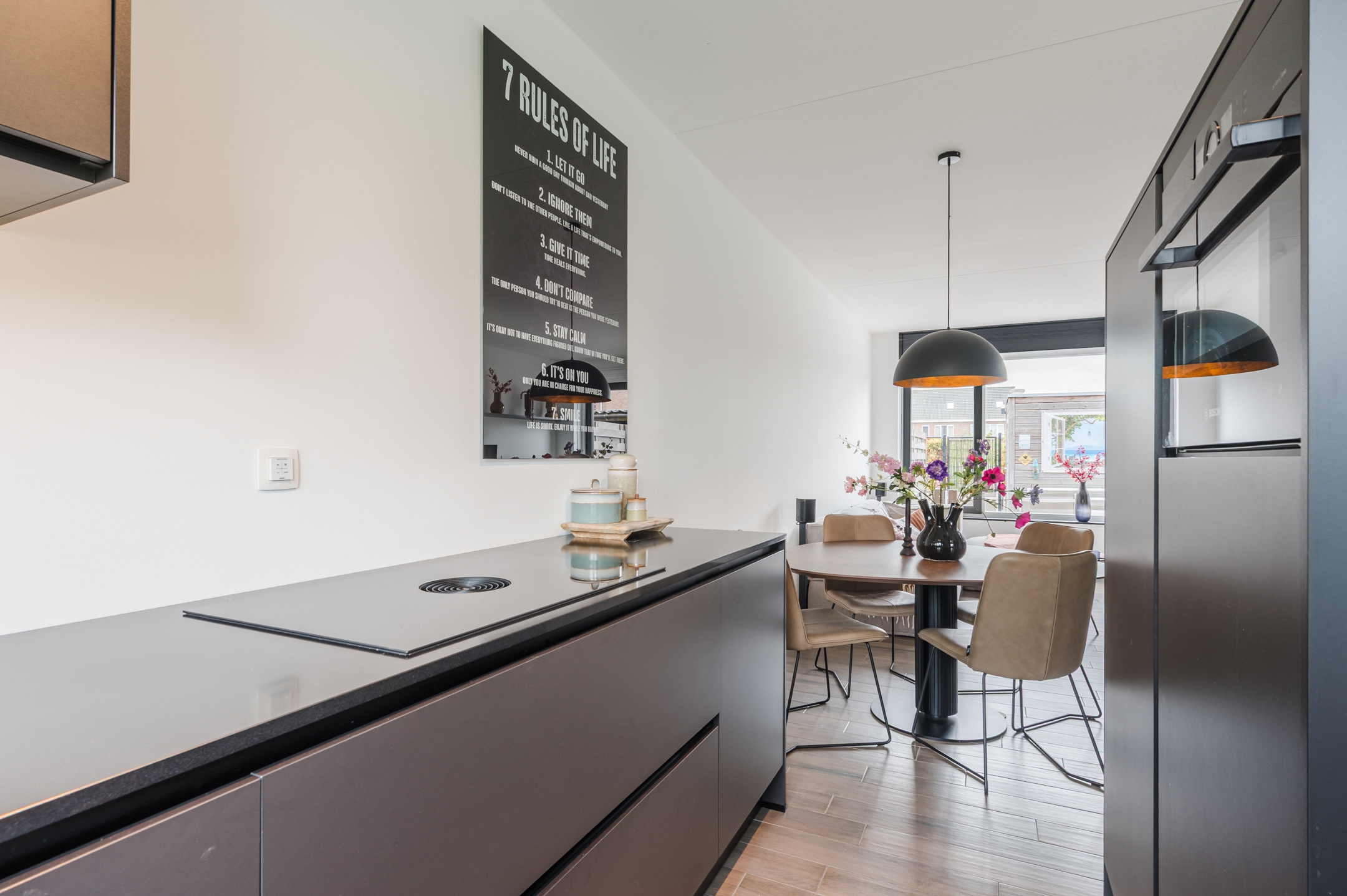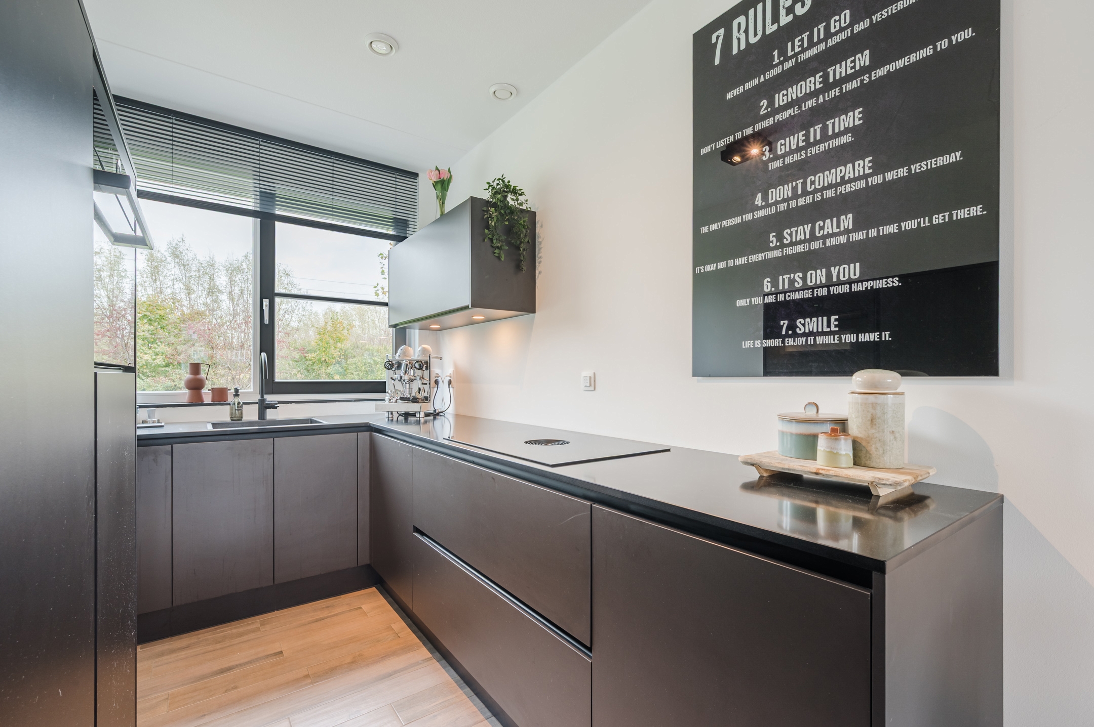 - Splinternieuwe, zwarte keuken (2022) met luxe inbouwapparatuur, o.a. downdraft afzuiging