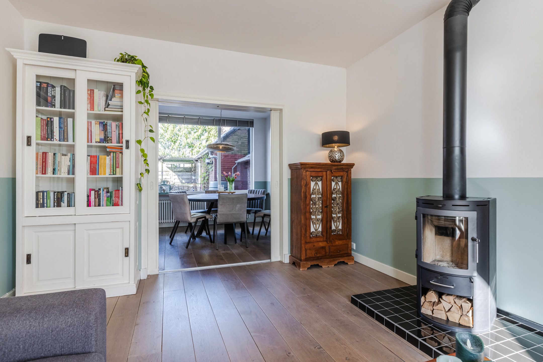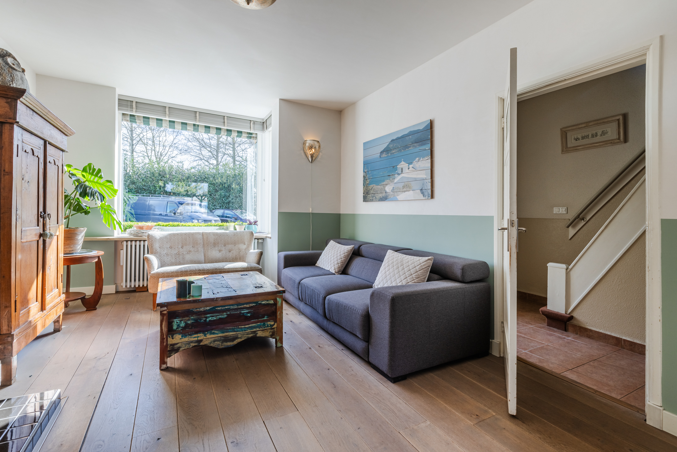 - Sfeervolle woonkamer met erker aan de voorzijde, kamer-en-suite deuren en prachtige houten vloer