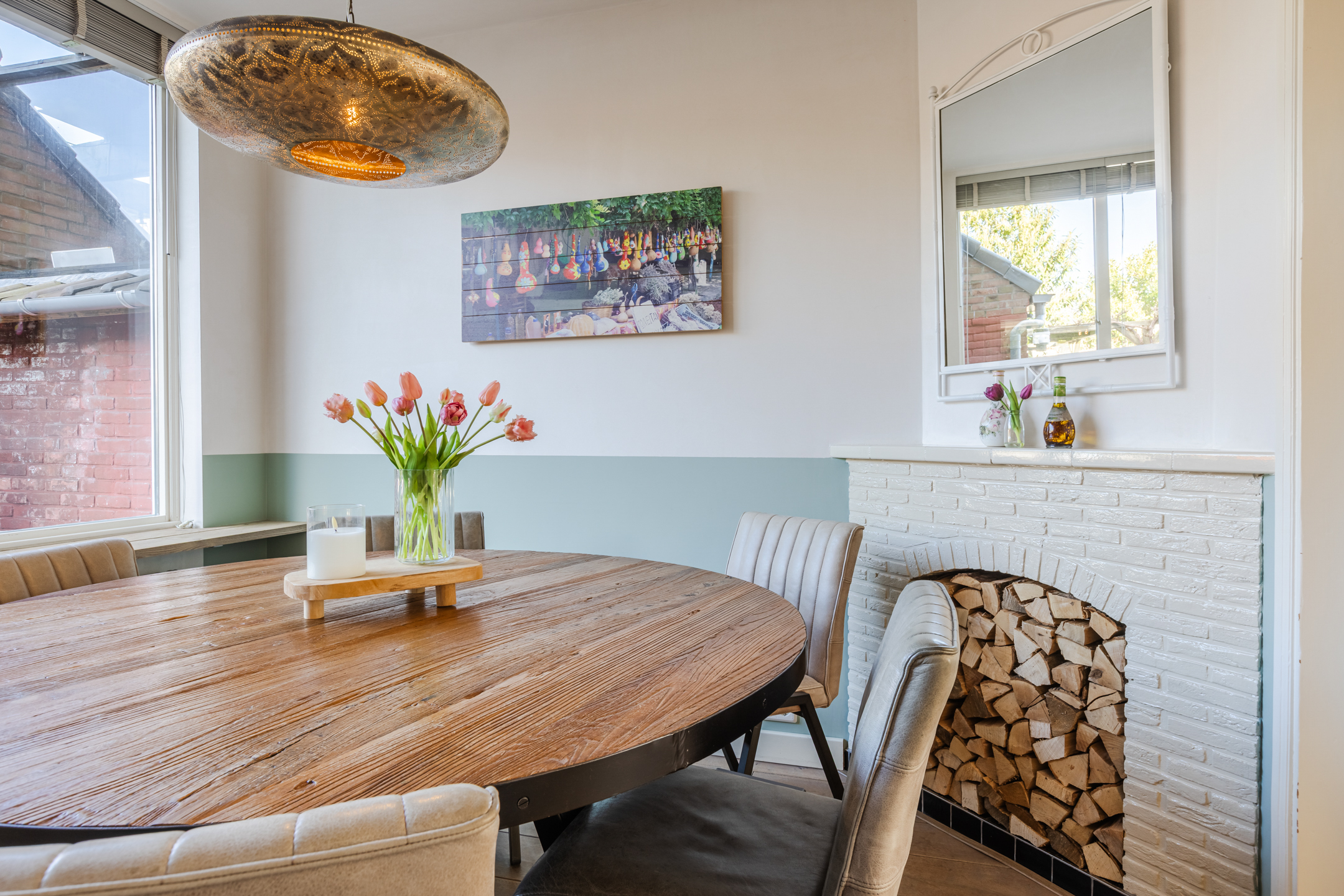 - Separate eetkamer, stijlvol af te sluiten met kamer-en-suite deuren en voorzien van schouw