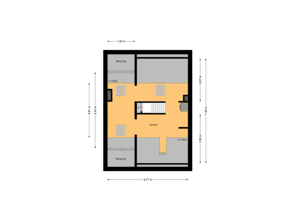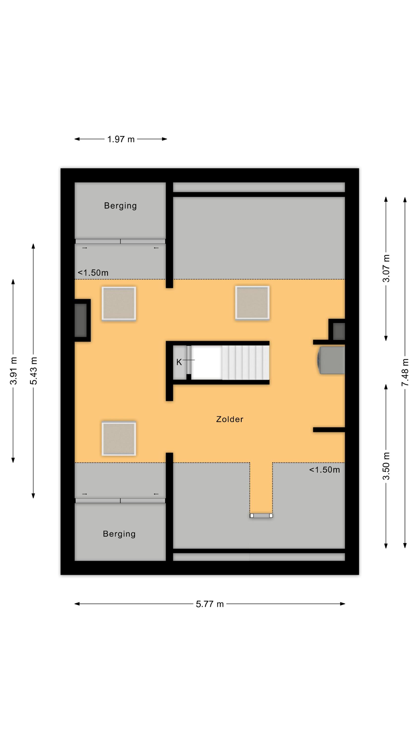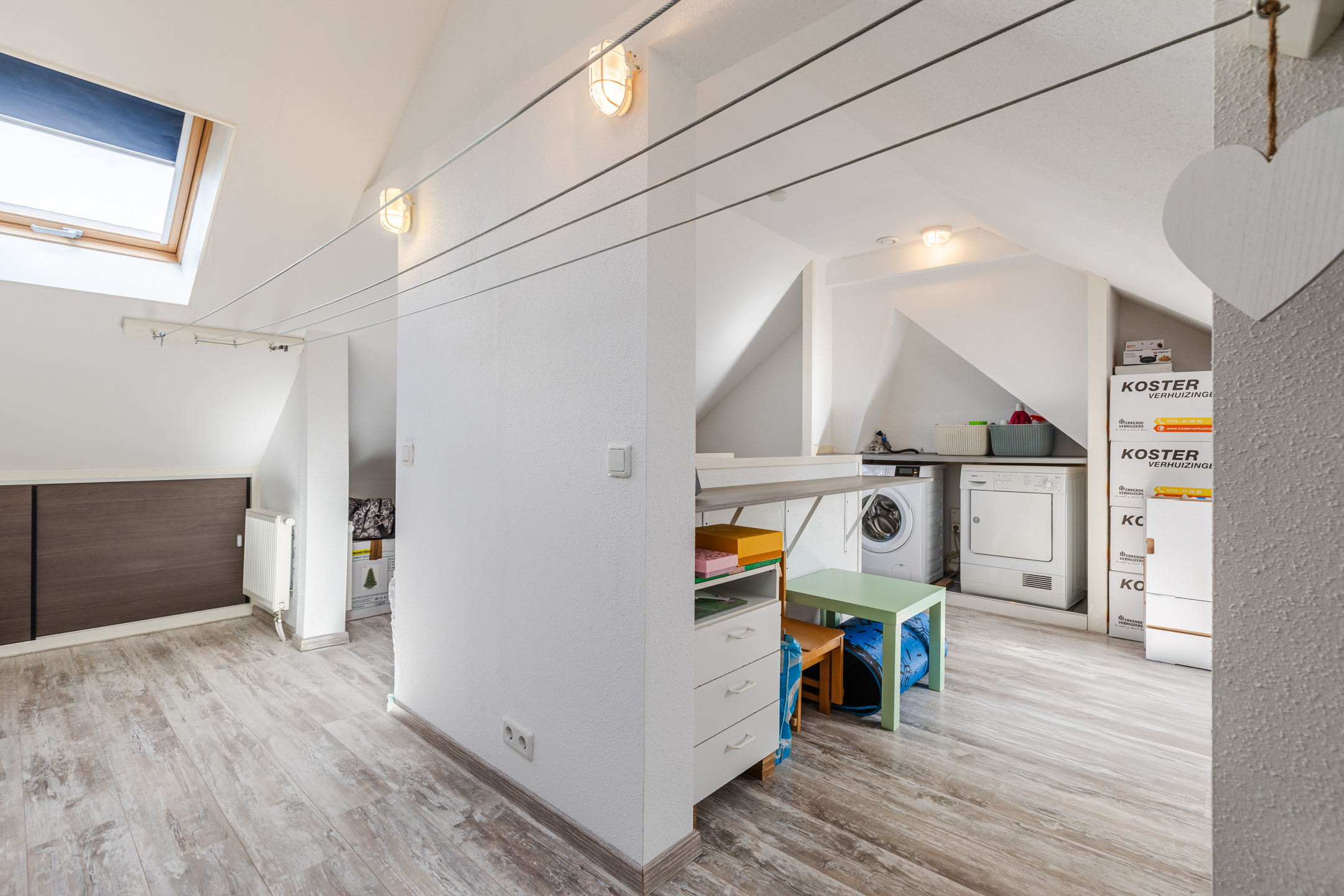 - Tweede verdieping met ruime open indeling, drie dakramen en een charmante mini-dakkapel, eenvoudig in te richten als twee extra slaapkamers