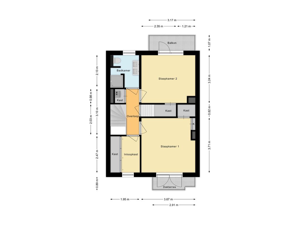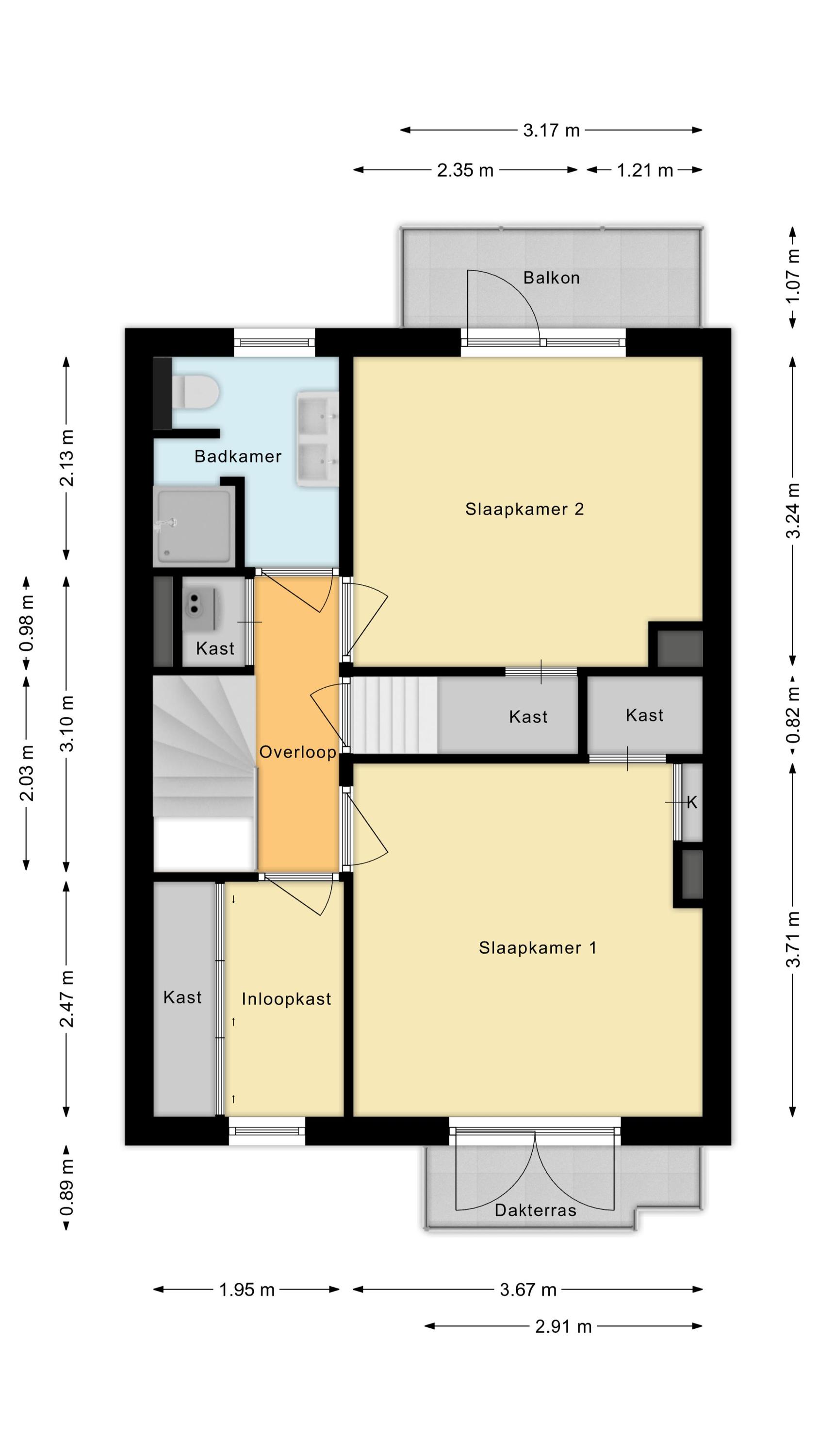o Slaapkamer aan de voorzijde met twee vaste kasten en toegang tot balkon