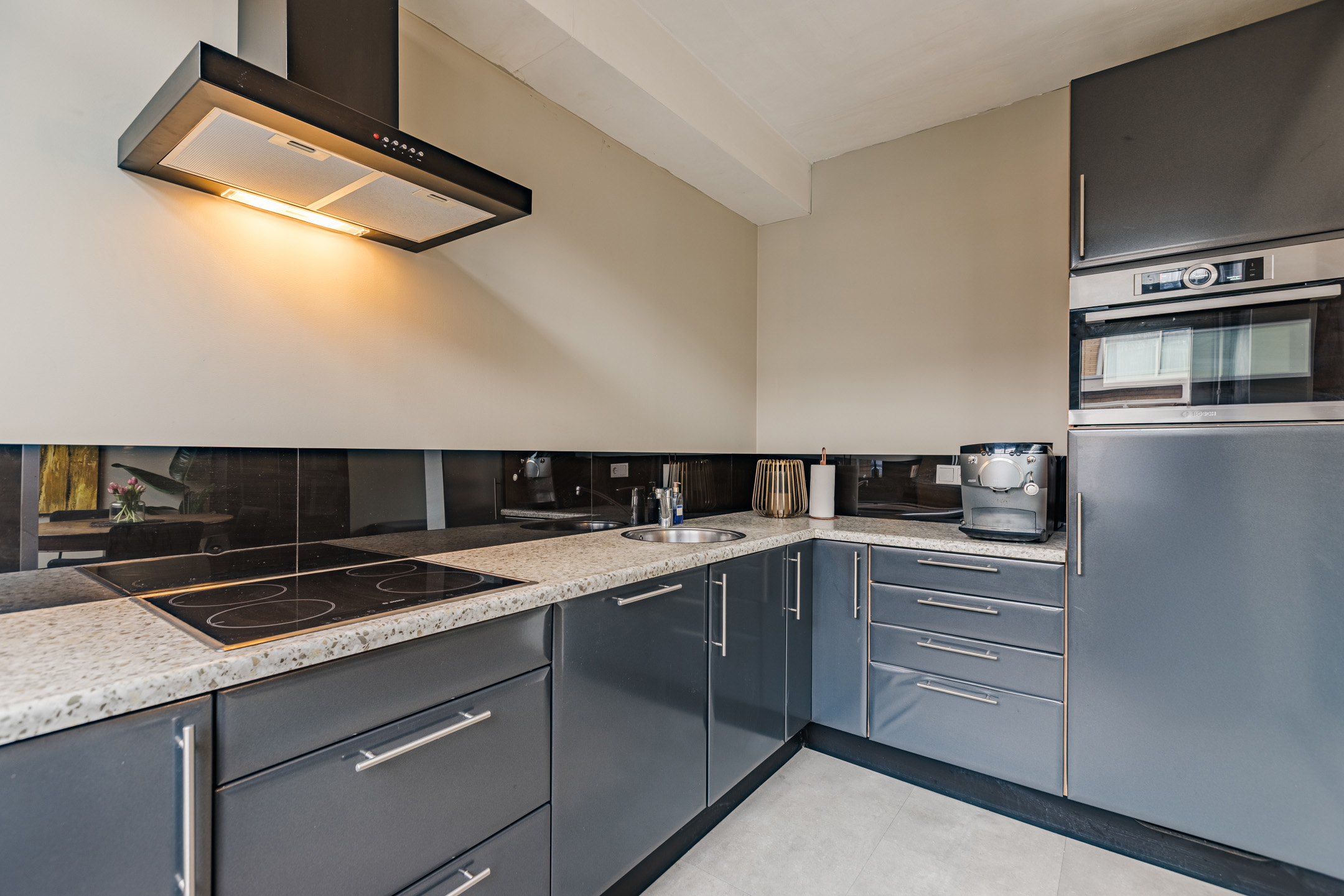 • Nette halfopen keuken uitgerust met diverse inbouwapparatuur