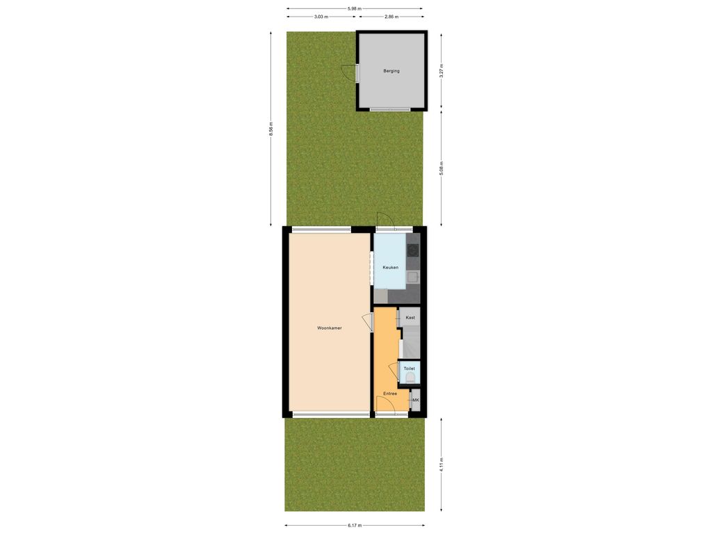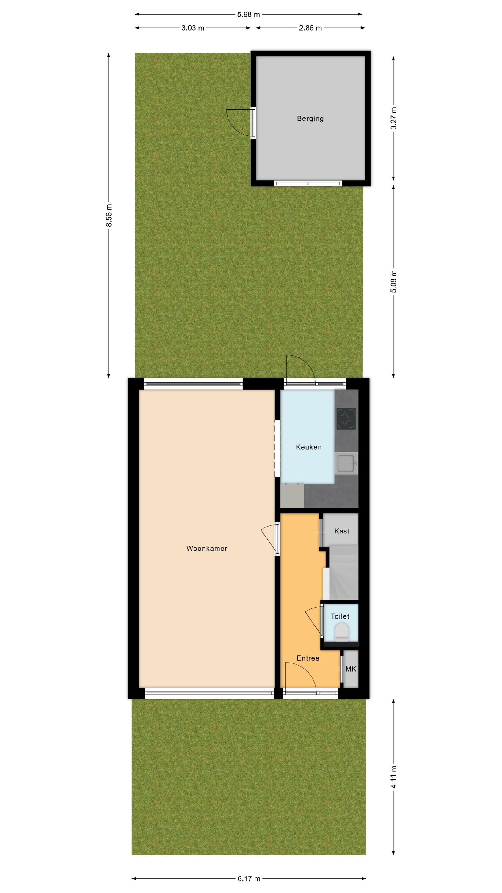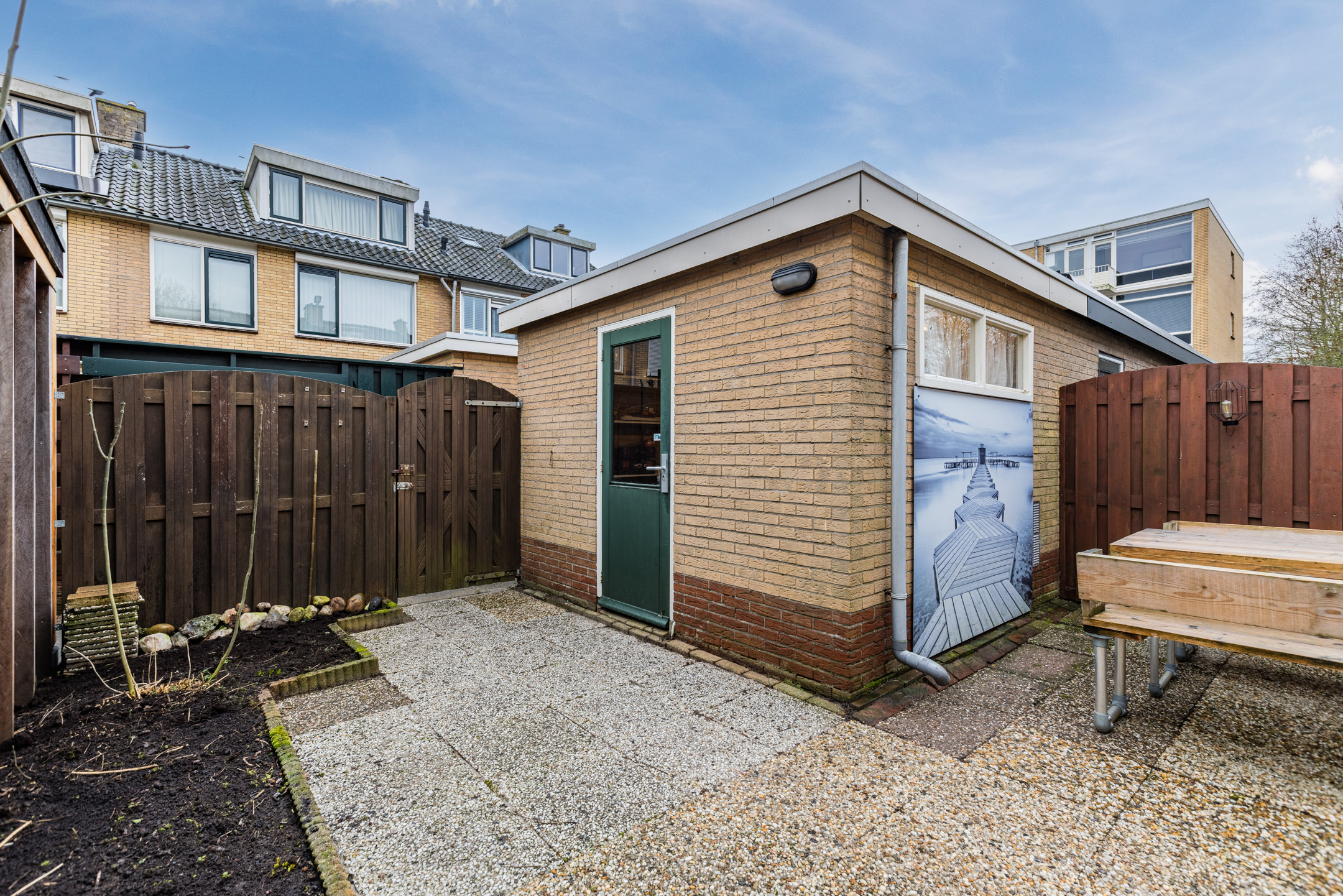 • Zonnige achtertuin op het zuidoosten, bereikbaar via een achterom en voorzien van een vrijstaande stenen berging
