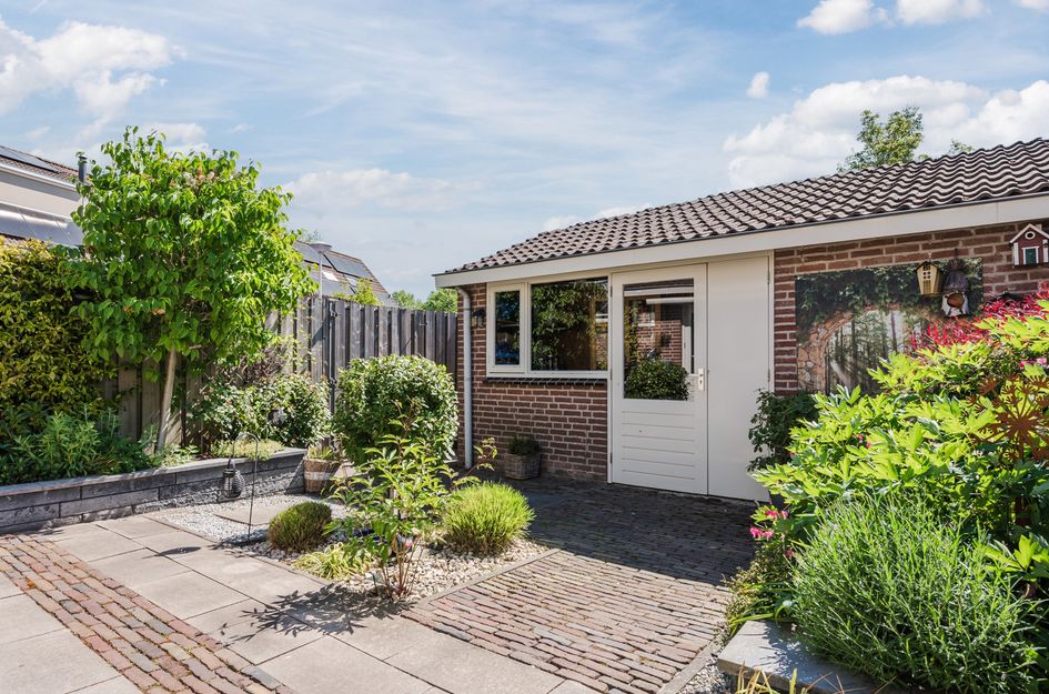 - Zonnige, fraai aangelegde achtertuin op het zuidoosten met achterom